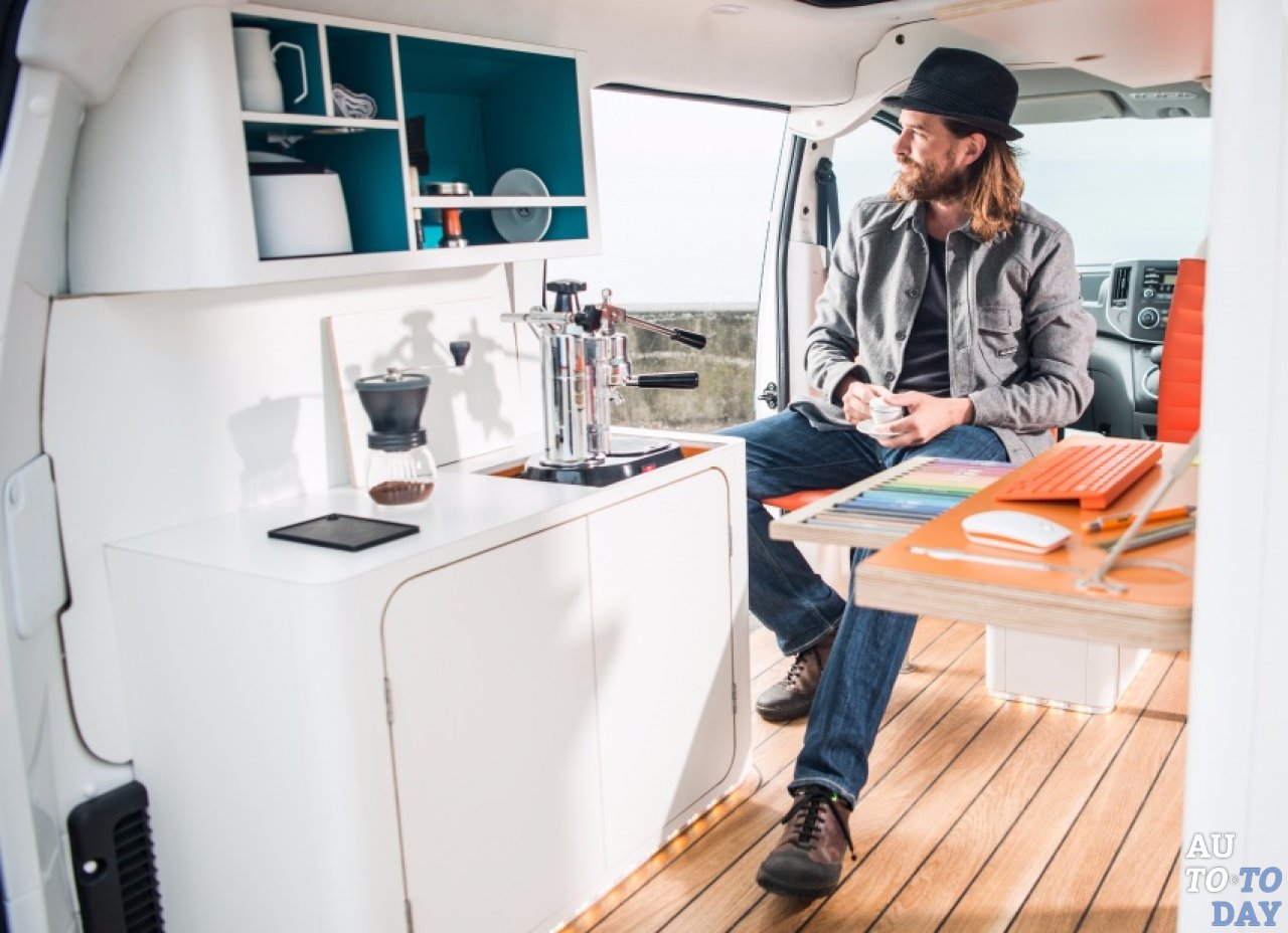 Nissan и британская проектная мастерская-студия Studio Hardie совместно разработали полностью электрический Nissan e-NV200 Workspace. Концепт довольно дешевый для запуска, а также может снизить стоимость поездок на работу, даст возможность парковаться на свободной станции зарядки электромобилей в городских центрах, а также позволит пользователям работать практически бесплатно. Кроме того, пользователи могли бы выбрать город или сельскую местность, или свежий воздух для работы.