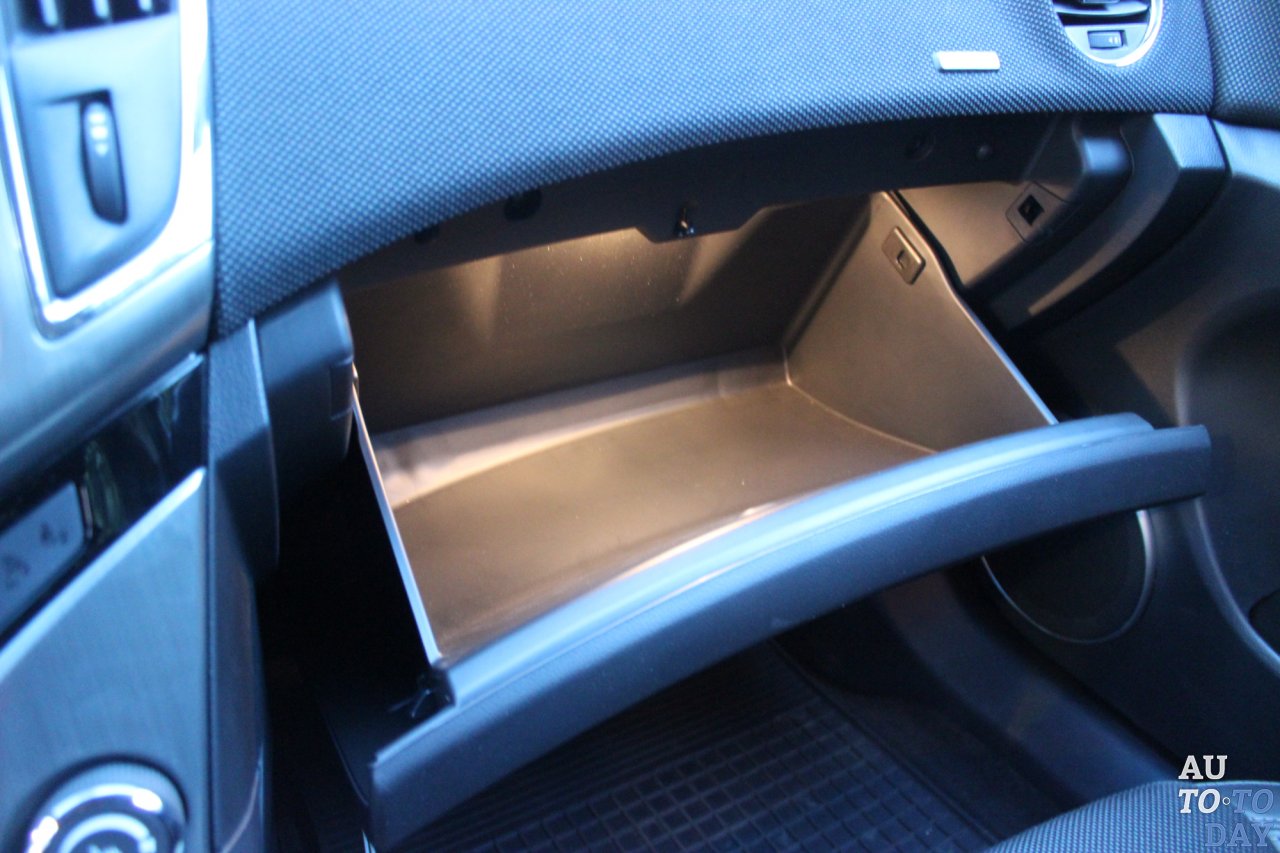 Несмотря на низкую посадку (что я бы не относил к недостаткам), обзор по сторонам неплох, при парковке выручает камера заднего вида. Сами же кресла отличаются по-американски мягкой структурой и широким диапазоном регулировок. Пассажиры разной комплекции и пола одинаково положительно отзывались о заднем диване. Говорили, мол, места много, сидеть удобно, только иногда выбираться с низкого второго ряда бывает затруднительно. В обычном положении в багажный отсек поместится 500 литров различного имущества. Если же сложить второй ряд, получаем ровную площадку с объемом 1478 литров – средний показатель как для универсалов С-класса. Кроме стандартного для хэтчбеков и универсалов мягкого тента, закрывающего багажник от посторонних глаз, сразу за спинкой второго ряда есть также удобная пластиковая полочка, в которую можно положить разные мелочи, наподобие салфеток, скребка для снега, дорожной подушки и бутылки с водой.