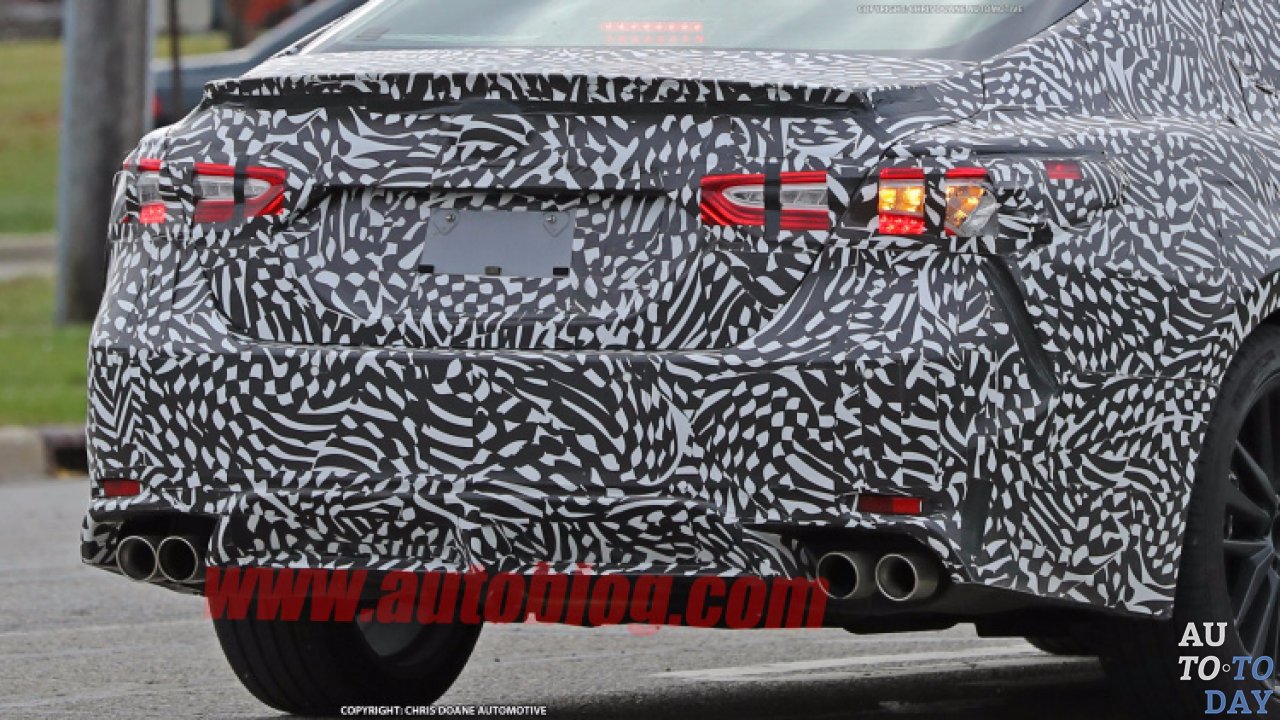 Прототип одет в спортивные мультиспицевые колеса в черном цвете. Боковой профиль седана нельзя назвать кардинально отличающимся от нынешнего поколения, но все же он получил немного более угловатый дизайн.