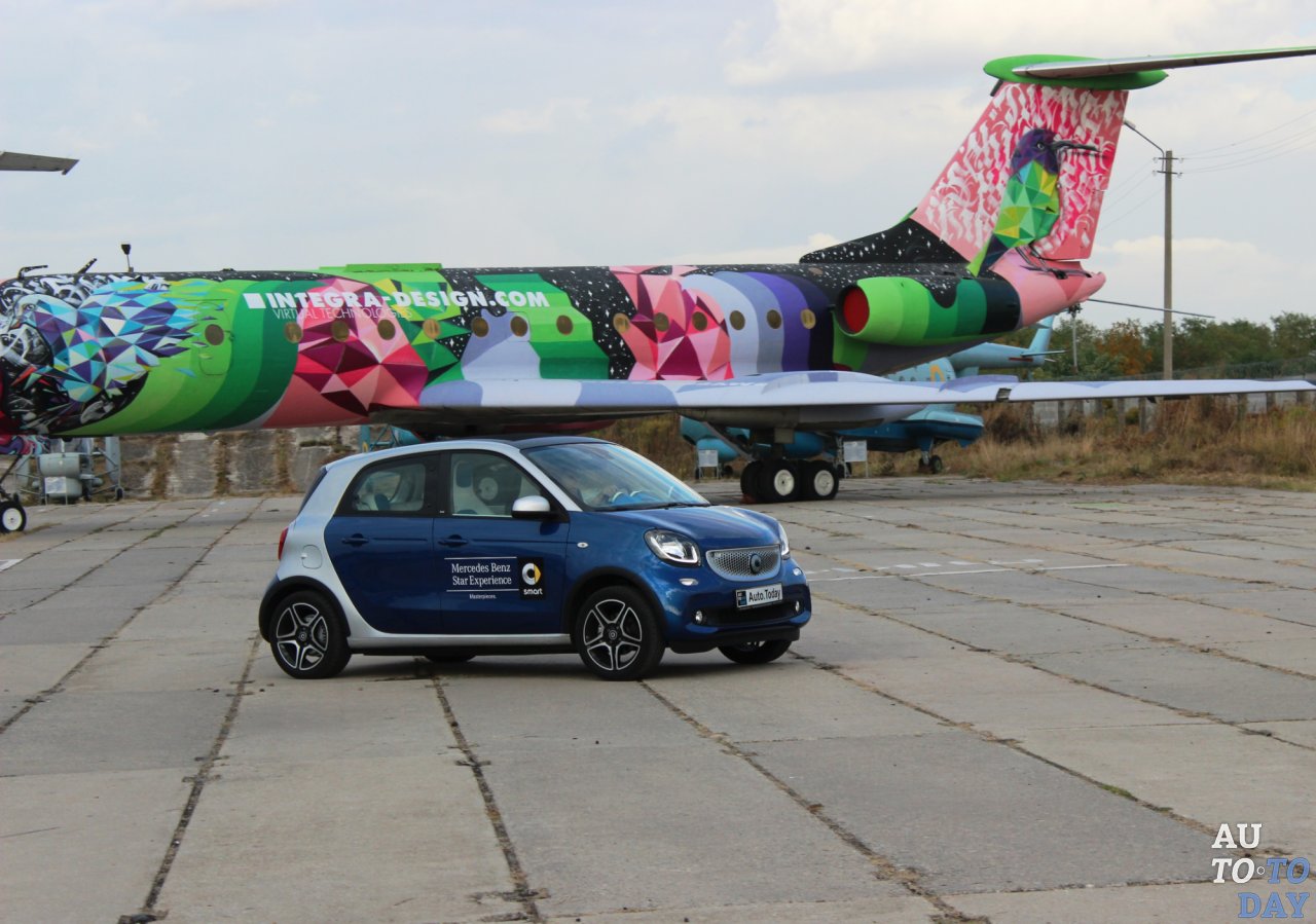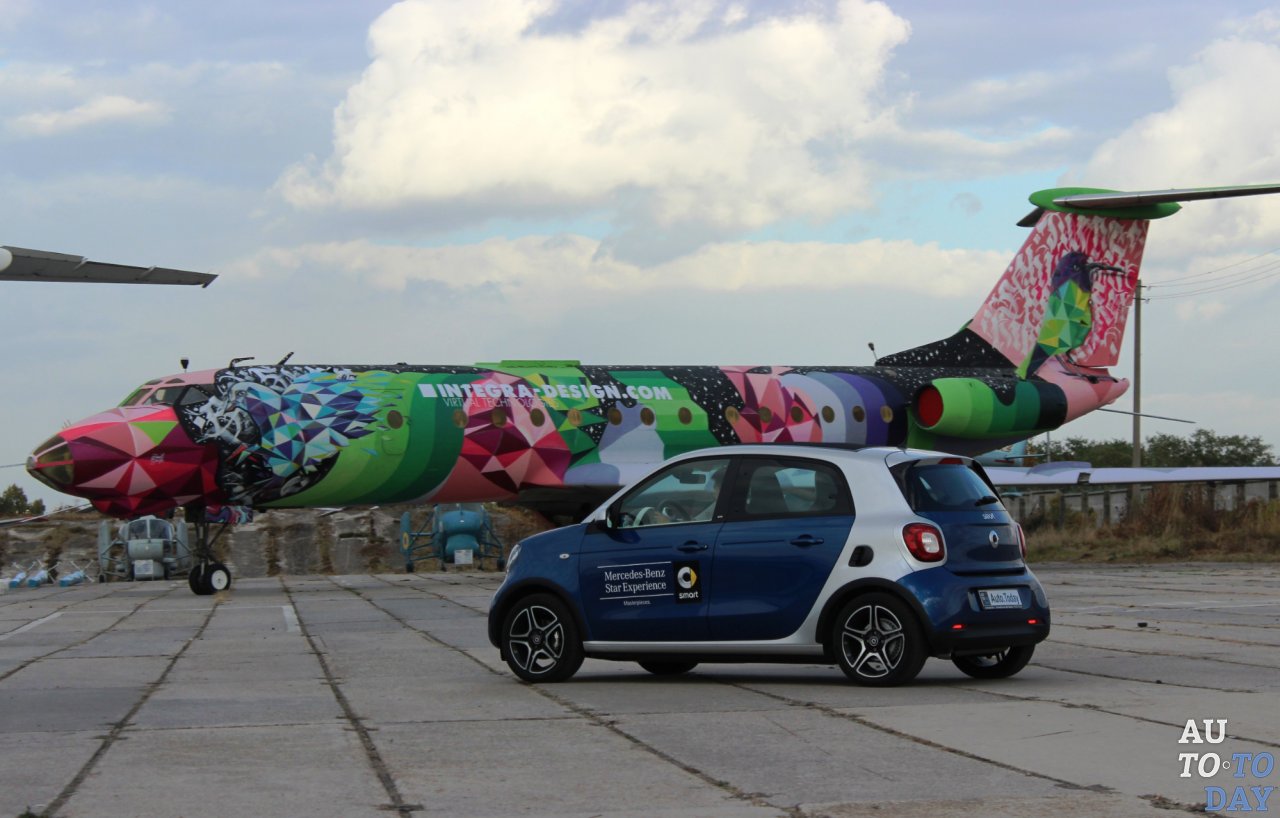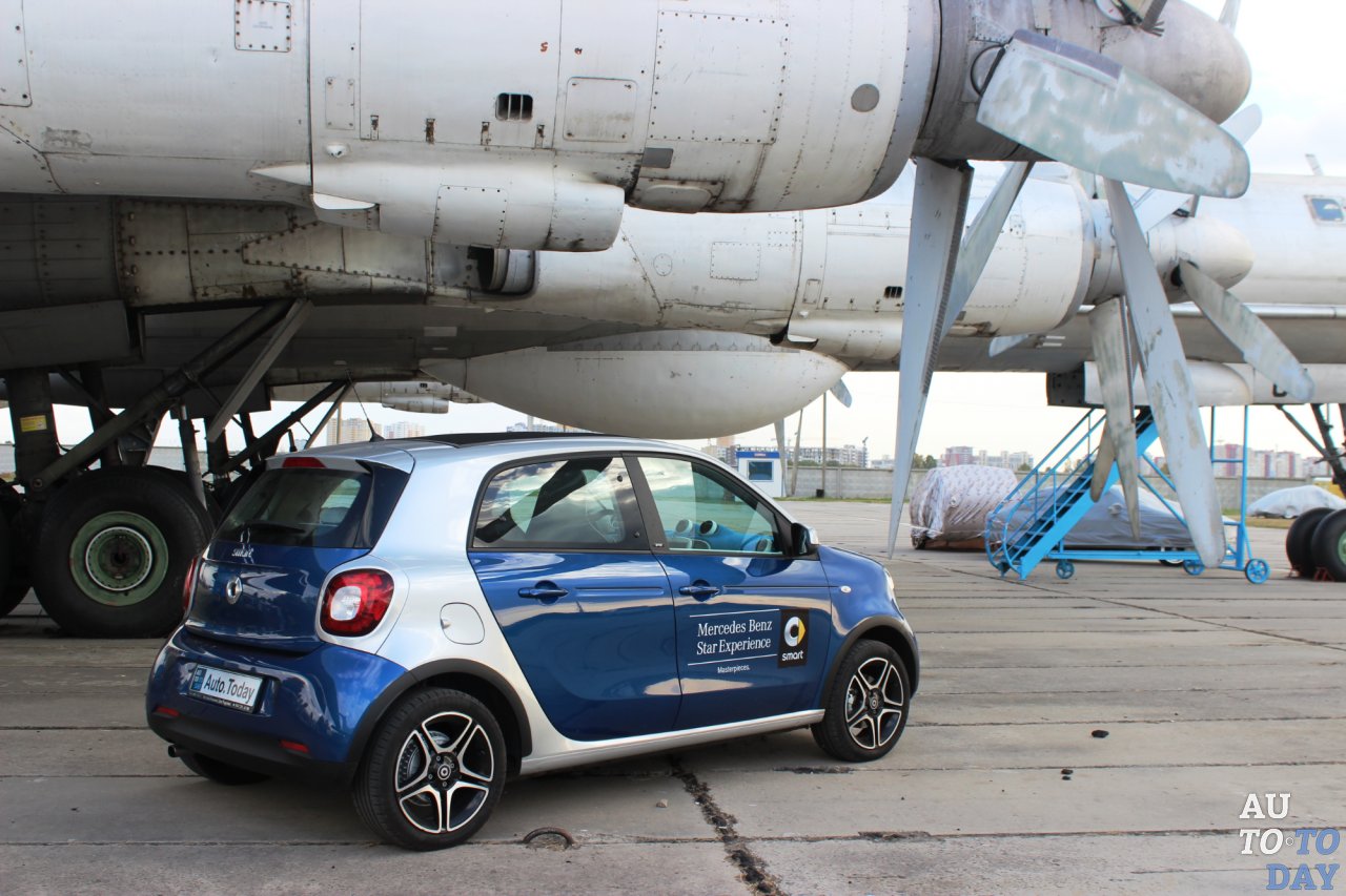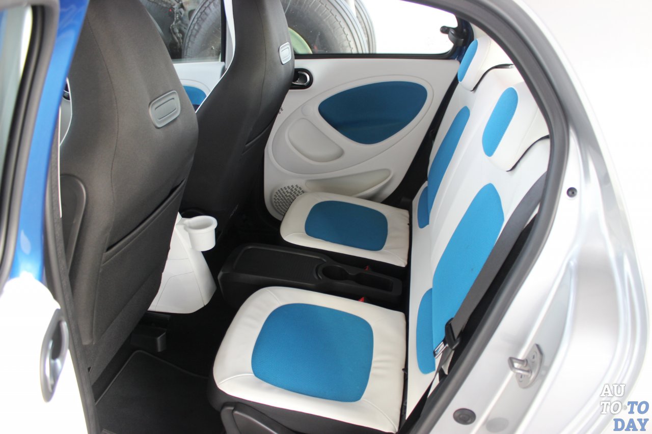 Сине-белый smart forfour мы выбрали в максимальной комплектации proxy. Это значит, что у него 0,9-литровый бензиновый мотор с турбиной, яркая двухцветная раскраска кузова и салона, а также сдвижная тканевая крыша – как у компактных городских автомобильчиков на заре их массового распространения по большим и малым европейским городам в 50-60-х годах прошлого века. Даже двигатель на новом «Смарте» расположен сзади, как и тогда. Но обо всем по порядку.