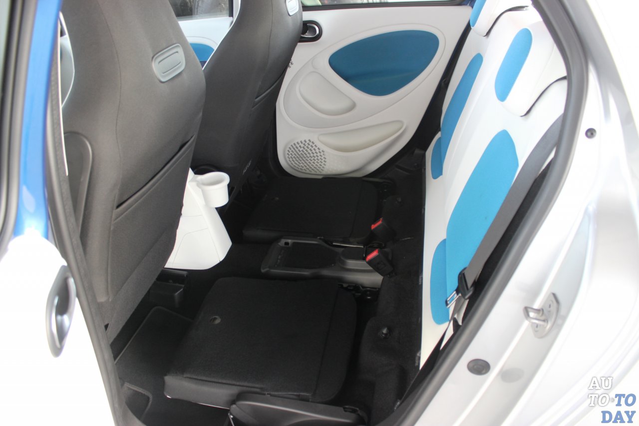 Удобно, что при необходимости подушки на галерке можно перевернуть и увеличить полезное пространство в задней части салона. Это позволяет складывать сюда высокие предметы (сумки, коробки), которые по высоте не помещаются в багажник. Окна в задних дверях не опускаются, а лишь приоткрываются на проветривание, как в трехдверных хэтчбеках. К слову, багажник по объему в походном положении идентичен багажнику Smart fortwo (185 литров), если же сложить спинки заднего ряда, получаем 975 литров. Длинномеры до 2,2 метра поместятся, если откинуть еще и спинку переднего пассажирского кресла. Отсеков для мелочей в машине не так уж много (характерная черта всех компакткаров), но кое-что для использования полезного места по максимуму конструкторы все же сделали: кроме бардачка в вашем распоряжении будут просторные ниши в дверях и выдвижной ящичек возле рычага КПП.