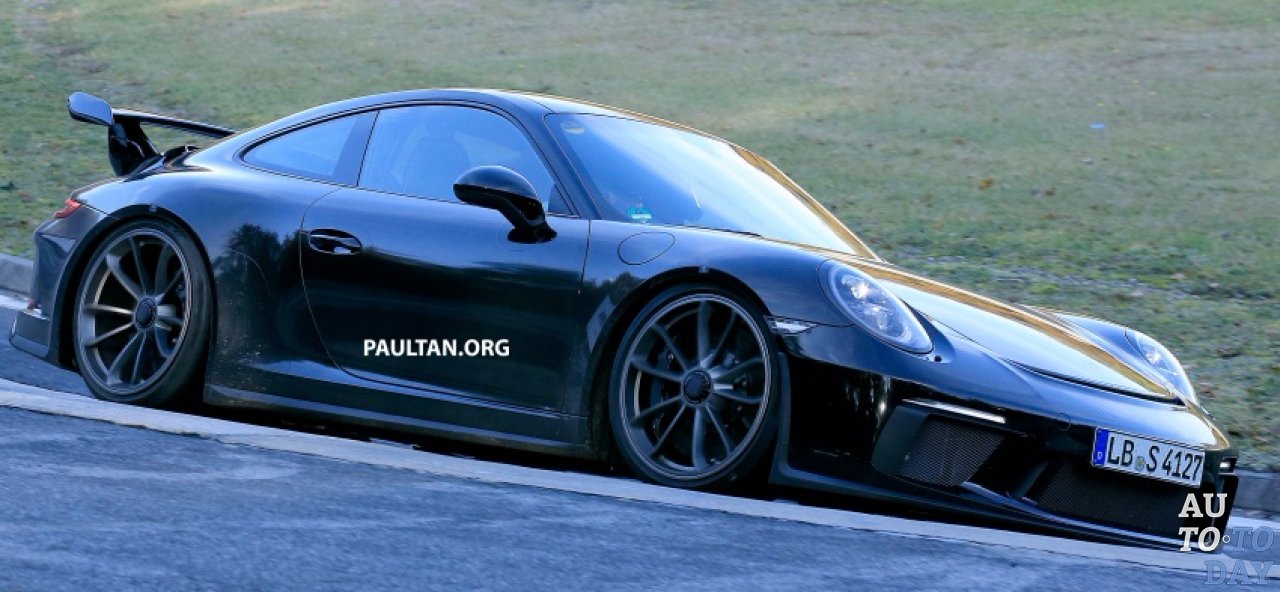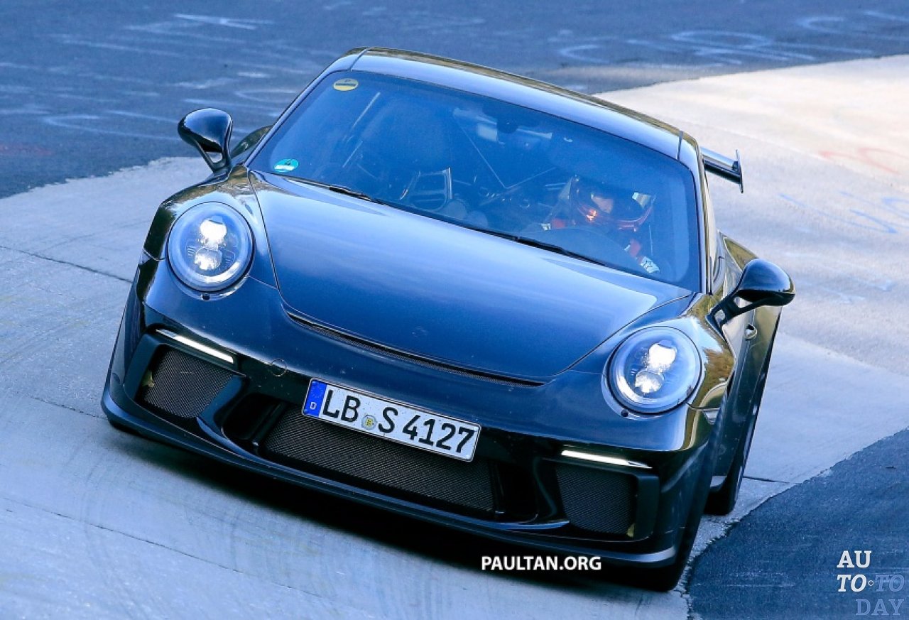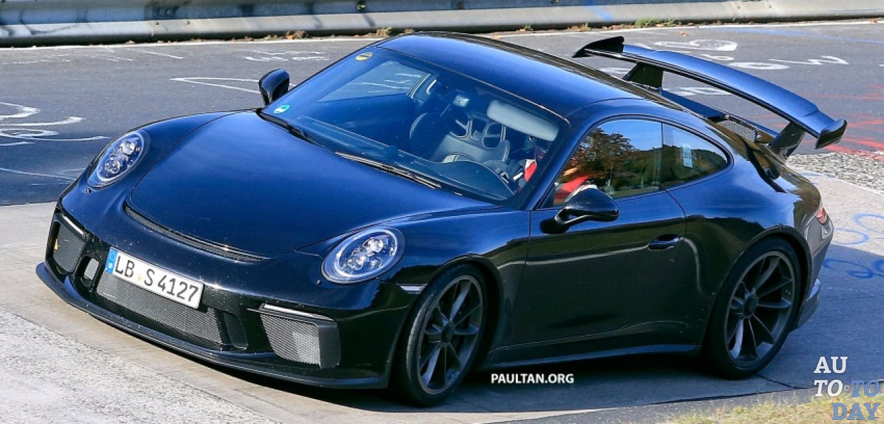 Замеченная на тестировании ранее, предстоящая, обновленная версия Porsche 911 GT3 показалась во всей красе без маскировки, что дало возможность разглядеть более четкий прямоугольный передний бампер от Cayman GT4 и обновленные более тонкие, прямые индикаторы, как на Carrera и Turbo из модельного ряда 911.