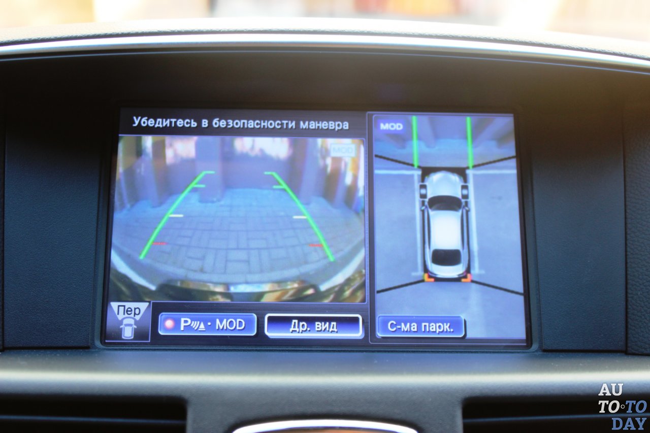 Управление многими функциями также дублируется через информационную систему. Ею удобнее всего пользоваться через многофункциональный джойстик на центральной консоли, потому что к самому сенсорному экрану далеко тянуться. На монитор также выводится картинка системы кругового обзора с четырьмя камерами. Парковка с ними – одно удовольствие.