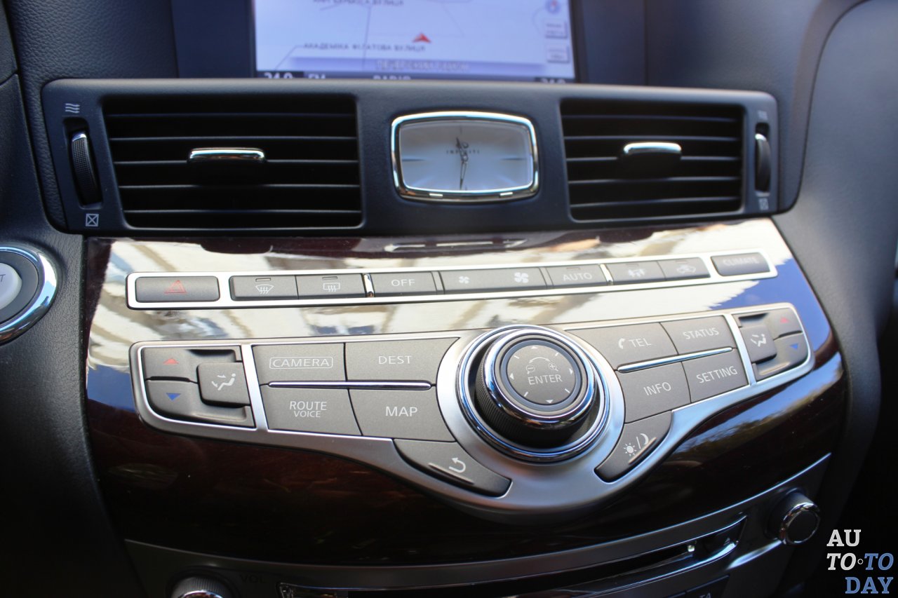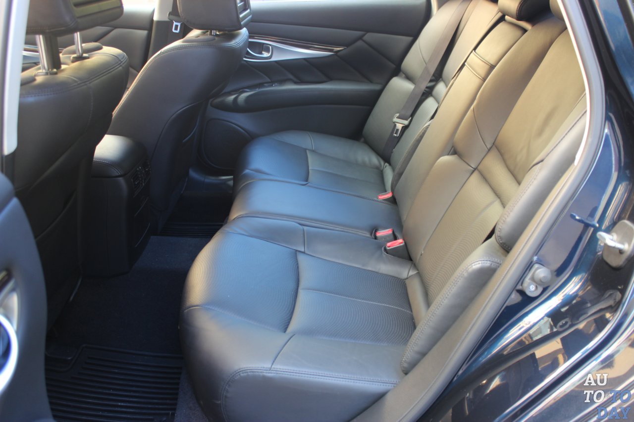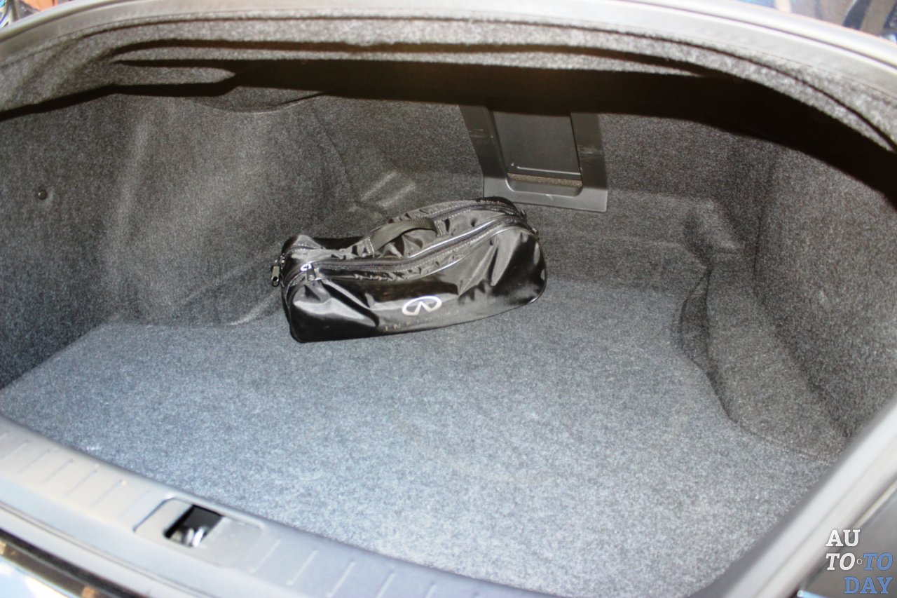 Единственное, чего мультимедиа не хватает – это поддержки операционных систем iOS и Android. Довершают премиальный образ салона Infiniti Q70 прямоугольные часы с классной белой подсветкой – давно не встречал в автомобилях такого стильного, аккуратно собранного и беззвучно «идущего» прибора времени! Багажный отсек – второстепенное понятие для автомобиля такого класса, но наш седан может перевезти 500 литров груза. Увеличить пространство для длинномеров можно, сложив лючок в подлокотнике. Полностью же спинка второго ряда не опускается, да и нужно ли это такой солидной машине?