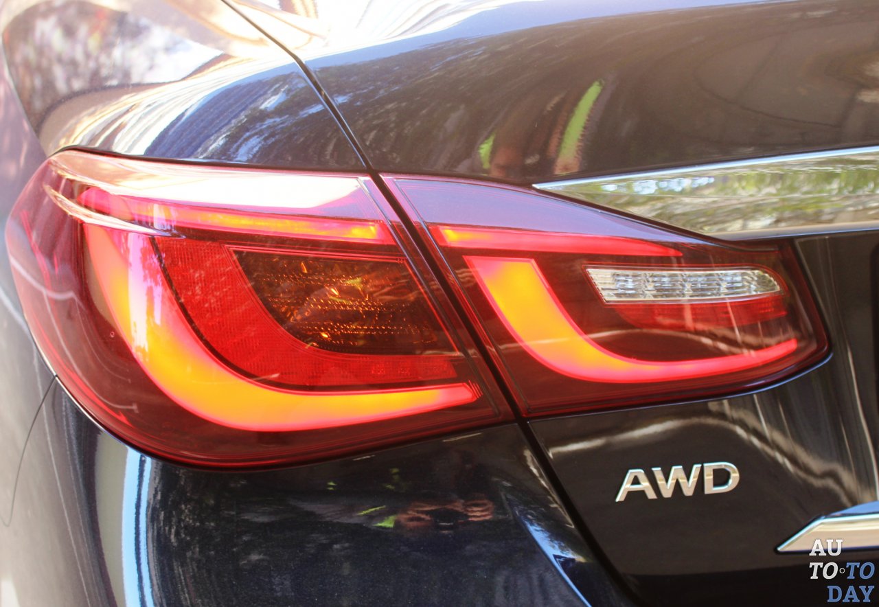 Седан кажется длиннее, чем есть на самом деле (4980 мм), все это благодаря низкой линии крыши, низкопрофильным 20-дюймовым колесам и близости кузова к дороге. Пусть это и не очень практично, но выглядит очень соблазнительно. Да, в нашей версии клиренс чуть меньше 146 мм, и при поисках парковки нужно всегда помнить, что въезд на средние и высокие бровки вам заказан – можно зацепиться как не порогом, так выразительно отставленной вниз губой. Зато мелких царапин весь кузов не боится: японцы гордятся тем, что машина окрашена специальной краской ASAP, которая сопротивляется мелким повреждениям.