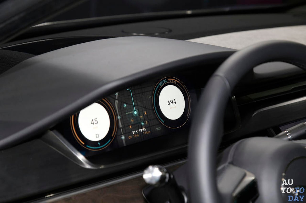 Из предоставленных фотографий мы видим, что просматривается яркий футуристический стиль в дизайне машины. Внутри он оснащен 12-дюймовым настраиваемым виртуальным кластером приборов для водителя, 12-дюймовым центральным сенсорным экраном для информационно-развлекательных систем и навигации, а также еще одним 5,5-дюймовым для настройки климата.
