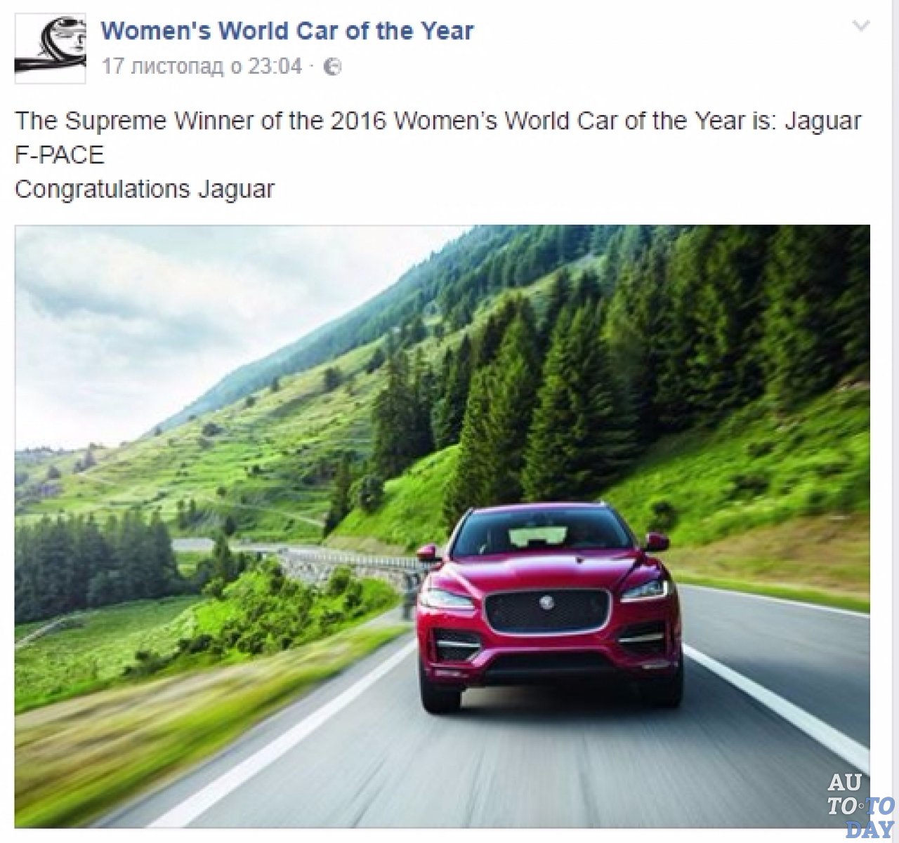 Их главным выбором в этом году стал Jaguar F-Pace, который был признан «Высшим Победителем» и получил награду Всемирного женского Автомобиля 2016 года, а также звание Всемирного женского внедорожника / кроссовера года, на радость руководителя JLR, Фионы Паргетер.