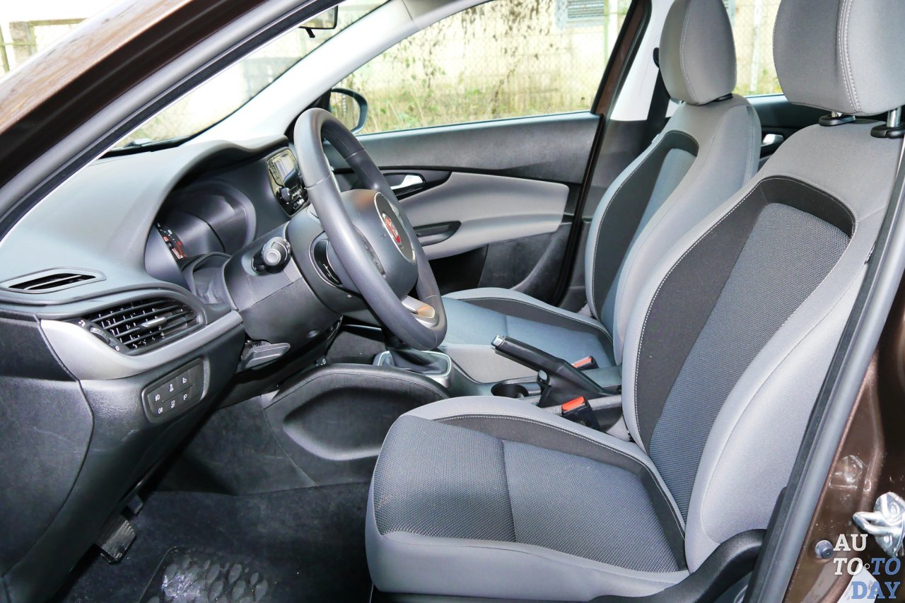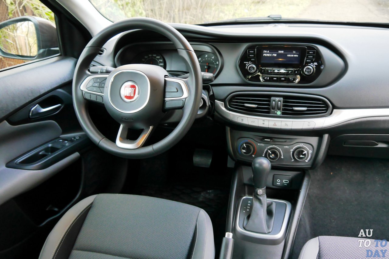 Салон собранного в Турции «Фиата», известного там как Aegea, не отличается претенциозностью и вычурностью форм, он выглядит намного сдержаннее внешности. А вот качество отделочных материалов порадовало, торпедо больше, чем на половину состоит из мягкого материала, который фактурой продолжается на дверных картах и центральном тоннеле, но уже в твердой форме. Передние кресла отличаются ярко выраженной боковой поддержкой, которая пытается держать водителя в поворотах – Fiat вспоминает забытые спортивные гены? Сидеть спереди удобно, глубокие спинки хорошо держат корпус. Быстро подстроиться за рулем помогает регулировка рулевого колеса по высоте и вылету – не частая опция среди конкурентов. Второй ряд запомнился широтой свободного простора, правда, не хватало хотя бы одного подстаканника по центру.