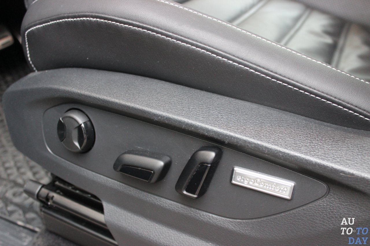 Даже в относительно холодную погоду (в дни теста температура за бортом временами опускалась ниже ноля градусов), печка очень быстро прогревает салон, что в современных дизельных машинах бывает не всегда. Двухзонный климат-контроль Climatronic и каналы обдува для галерки позволяют отрегулировать оптимальную температуру не только спереди, но и на заднем ряду. Передние кожаные сидения отличаются отличной боковой поддержкой, которая оказалась уместной на пересеченной местности.