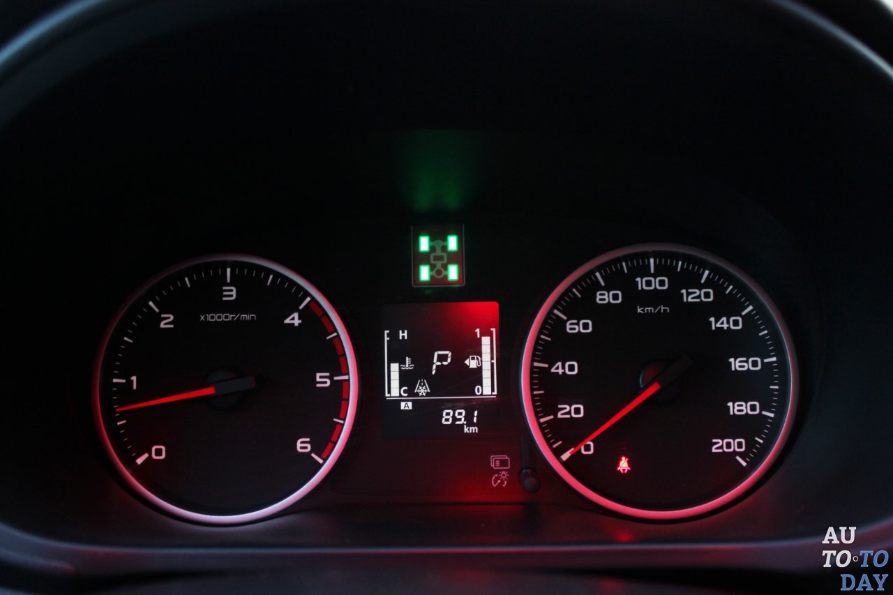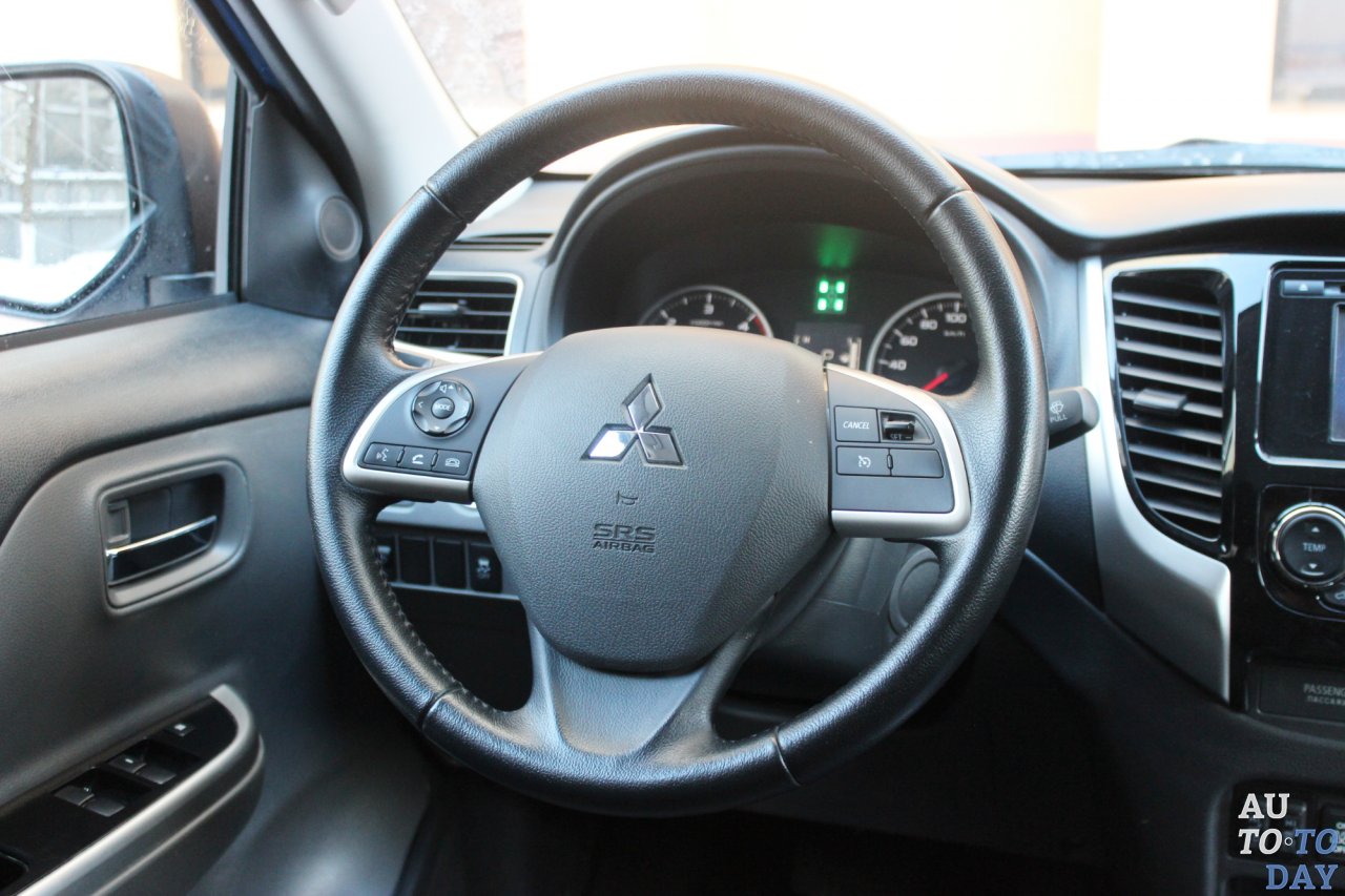 Простой и понятный в любой ситуации (хоть на скоростной трассе, хоть в чистом поле) щиток приборов имеет теперь два больших циферблата взамен трех колодцев, а на монохромный экранчик борткомпьютера выводится прочая необходимая информация. Листать страницы с информацией можно, но переключаются они не с руля, а кнопкой на самой приборной доске, что не очень удобно. Но самое интересное в приборах – это маленький схематический вид трансмиссии, по которому можно понять, какие мосты и блокировки сейчас задействованы. «Окошко», к слову такое же, как и на старшем брате – Mitsubishi Pajero Sport.