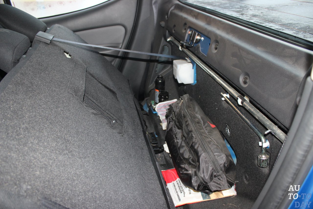 Сидения – вот, пожалуй, главный маркер прогресса салона пикапа. Спинки стали шире, а диапазон регулировки по высоте увеличился (при этом водителя с ростом больше 190 см рано или поздно посетит чувство, что он сидит необычно близко к полу). Однако, дальняя дорога показала, что на самом деле посадка вполне нормальная. Да и в целом родился вывод, что на пикапе можно смело отправляться в большие путешествия всей семьей. Единственное, сидящему сзади по центру будет не очень комфортно, поскольку зона центрального заднего подлокотника все же жестковата. Если откинуть спинку второго ряда, то получаем доступ к такой себе кладовочке – месту хранения домкрата, набора инструмента и других полезных «мелочей».