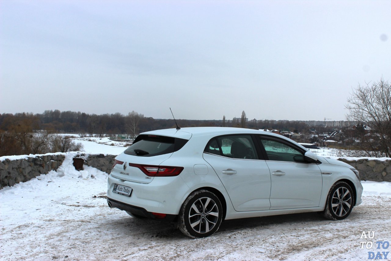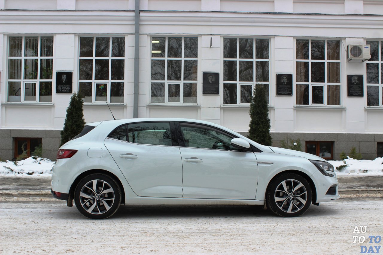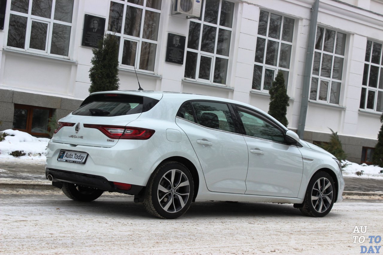 Спереди Renault впечатляет светодиодными фарами (и ближнего, и дальнего света) с бумерангами дневных ходовых огней. Дизайн фар и решетки радиатора «Меган» позаимствовал у премиального минивена Renault Espace. В профиль благодаря мускулистой линии задних дверей и меньшей площади остекления машина кажется более приземистой. Но и в действительности новинка сбросила несколько миллиметров в высоту. Корма «француза» также не обделена выразительными элементами: здесь это вытянутые горизонтально, почти соединенные воедино светодиодные фонари, которые особенно эффектно смотрятся ночью.