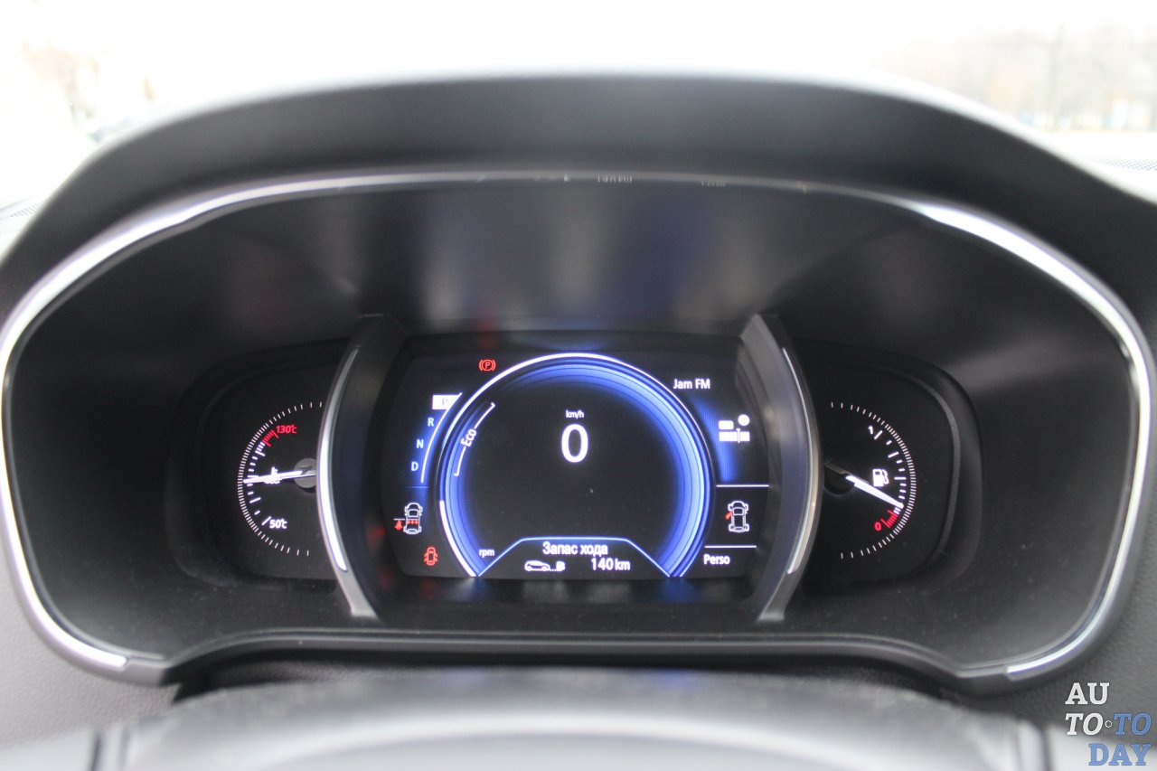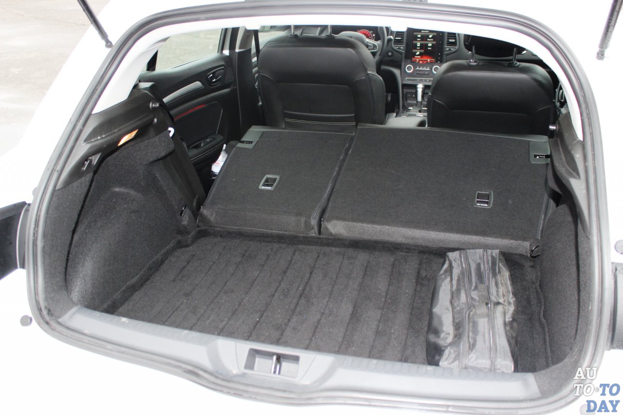 Кресла, по-французски мягкие, получили вполне работоспособную боковую поддержку. По моим ощущениям, места на галерке осталось столько же, сколько было и в предшественнике, хотя колесная база выросла на 28 мм. В распоряжении сидящих сзади – пара персональных дефлекторов обдува и 12-вольтовая розетка. Высоким пассажирам может показаться узким задний дверной проем, хотя на себе я этого не ощутил. Багажник на вид емкий, глубокий, с объемом в 384 литра. Но если вы ощущаете дефицит пространства – просто складываете спинки второго ряда, и получаете уже 1247 литров. Порожек, образовывающийся между сидениями и грузовой зоной при трансформации спинки, по наследству достался от третьего «Мегана».