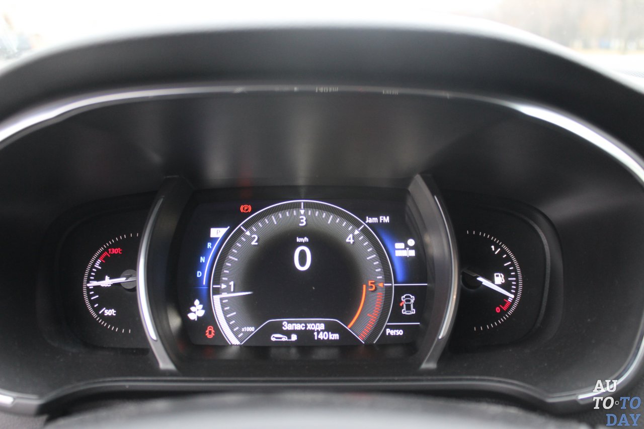 Что умеет бортовая информационно-развлекательная система R-Link 2? Очень много – прокладывать маршрут, регулировать микроклимат в салоне, управлять музыкой, проигрывать кино и пр. Электронный щиток приборов имеет пять цветов подкладки и четыре типа циферблатов на выбор, что в сумме дает два десятка различных вариантов. Мой выбор – зеленый цвет и конфигурация с ярко выраженным расходометром и цифровым спидометром в центре. Только указатель уровня топлива и датчик температуры по бокам оставили аналоговыми. Подсветку в салоне также можно менять. Новый руль с приливами очень удобен, срезанный нижний сектор намекает на спортивный характер автомобиля. Что ж, характер не характер, но кое-что в поведении хэтчбека этому намеку соответствует.