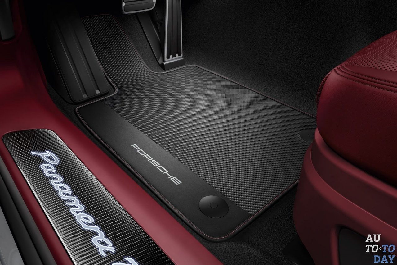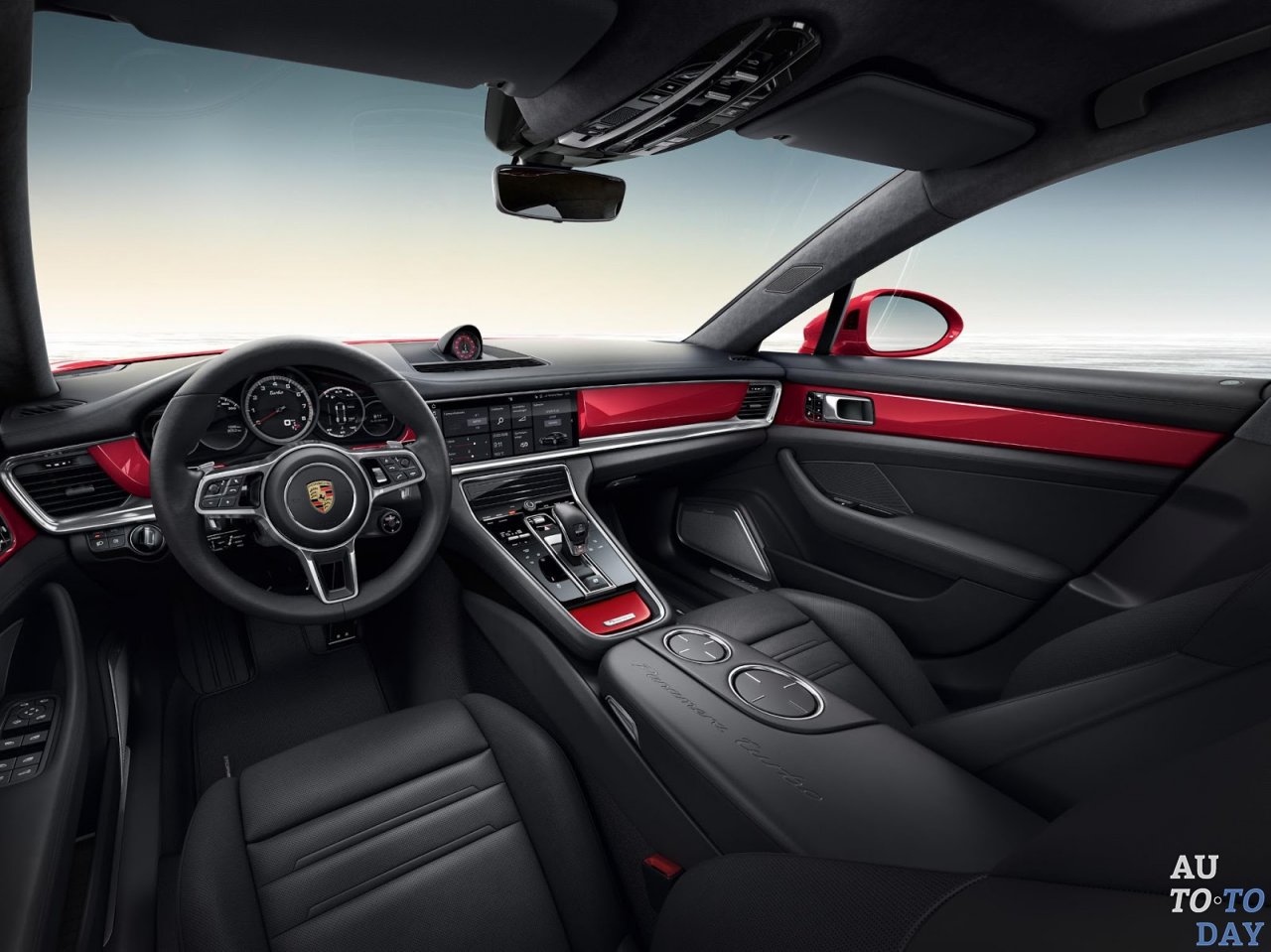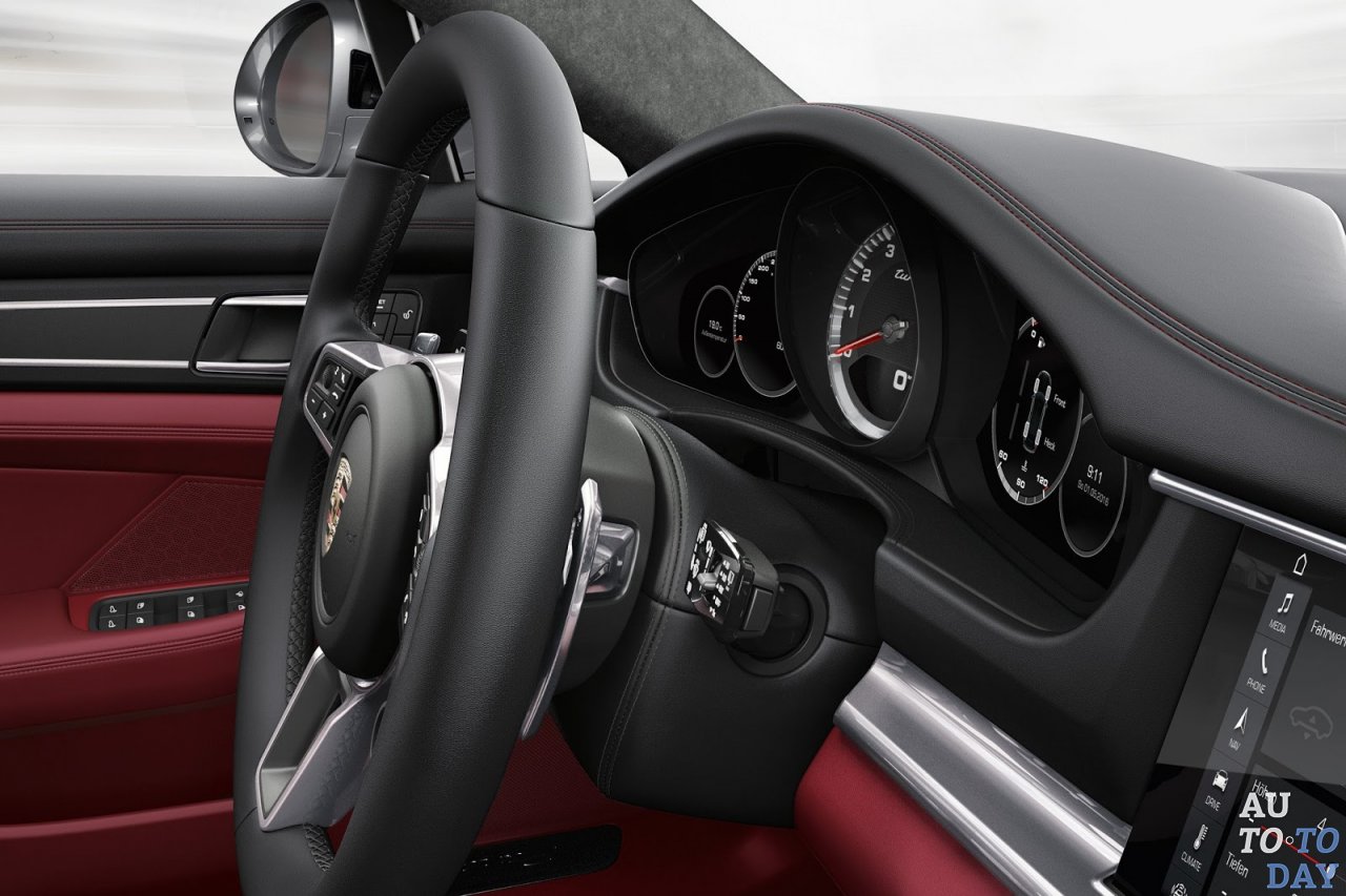 Внутри модели, красная и черная тема продолжается с двумя различными вариантами сочетания двух оттенков. Салон отделан черной кожей с красными вставками на передней панели, дверях и нижней части центральной консоли. Дополняет картину красно-черный ключ-брелок. Пакет от подразделения Porsche Exclusive доступен и для автомобиля со стандартным размером колесной базы, который был продемонстрирован еще летом.