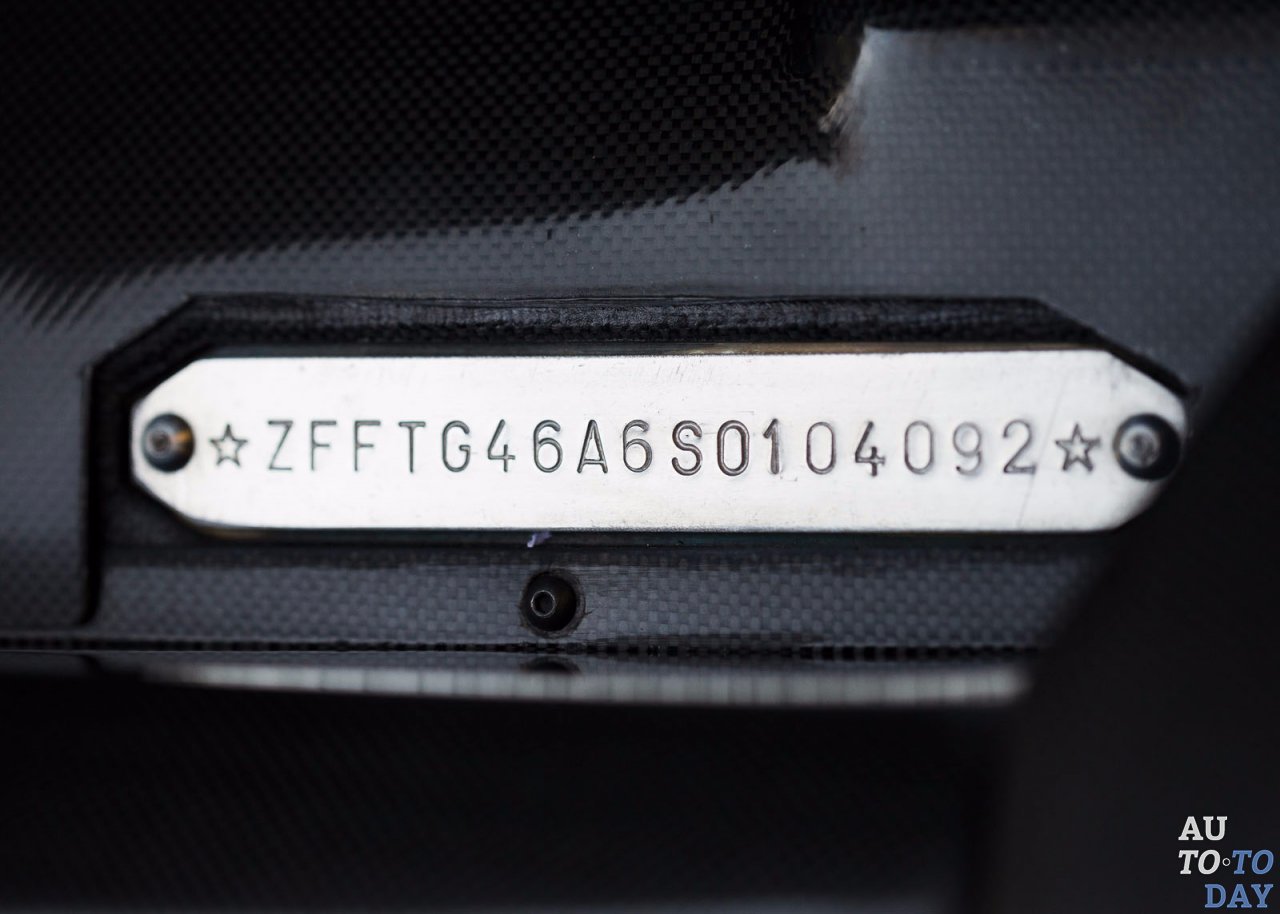 Номер шасси этого автомобиля - ZFFTG46A6S0104092, который был одним из двух экземпляров, поставляемых в черном цвете в Соединенные Штаты. Другой разбился недавно, и хотя он был отремонтирован, вариант, который вы видите здесь остается самым нетронутым.