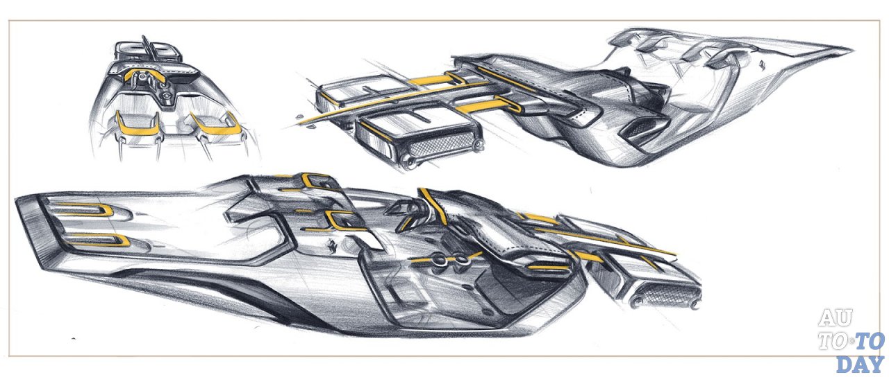 Конечным результатом получился смелый концепт с агресивной передней панелью, которая включает в себя гигантскую решетку, гладкие фары и лобовое стекло. Конечно, ключевую особенность дизайна можно найти на задней панели.