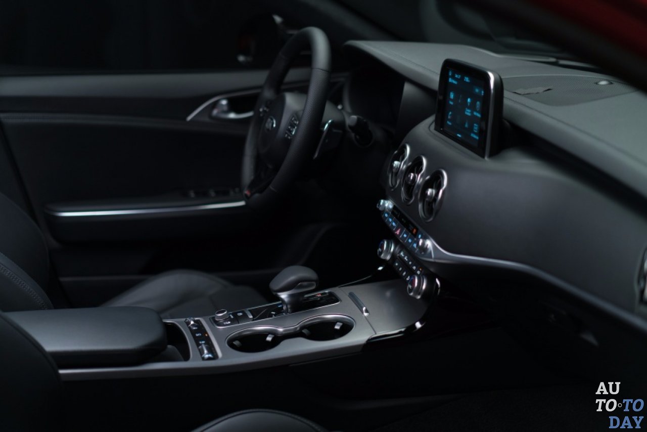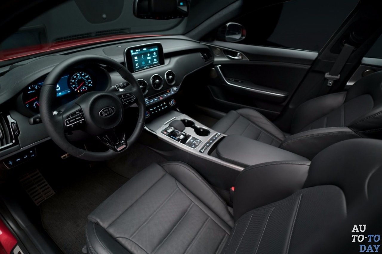 Внутри есть простая, ориентированная на водителя приборная панель с тройными круглыми отверстиями для воздуха в стиле Audi. В стандартной комплектации Stinger поставляется с шестью динамиками и сенсорным экраном информационно-развлекательной системы UVO с семидюймовым дисплеем, в то время как более дорогие модели получают девять динамиков с внешним усилителем. Также имеется проекционный дисплей и беспроводная зарядка для смартфонов на центральной консоли.