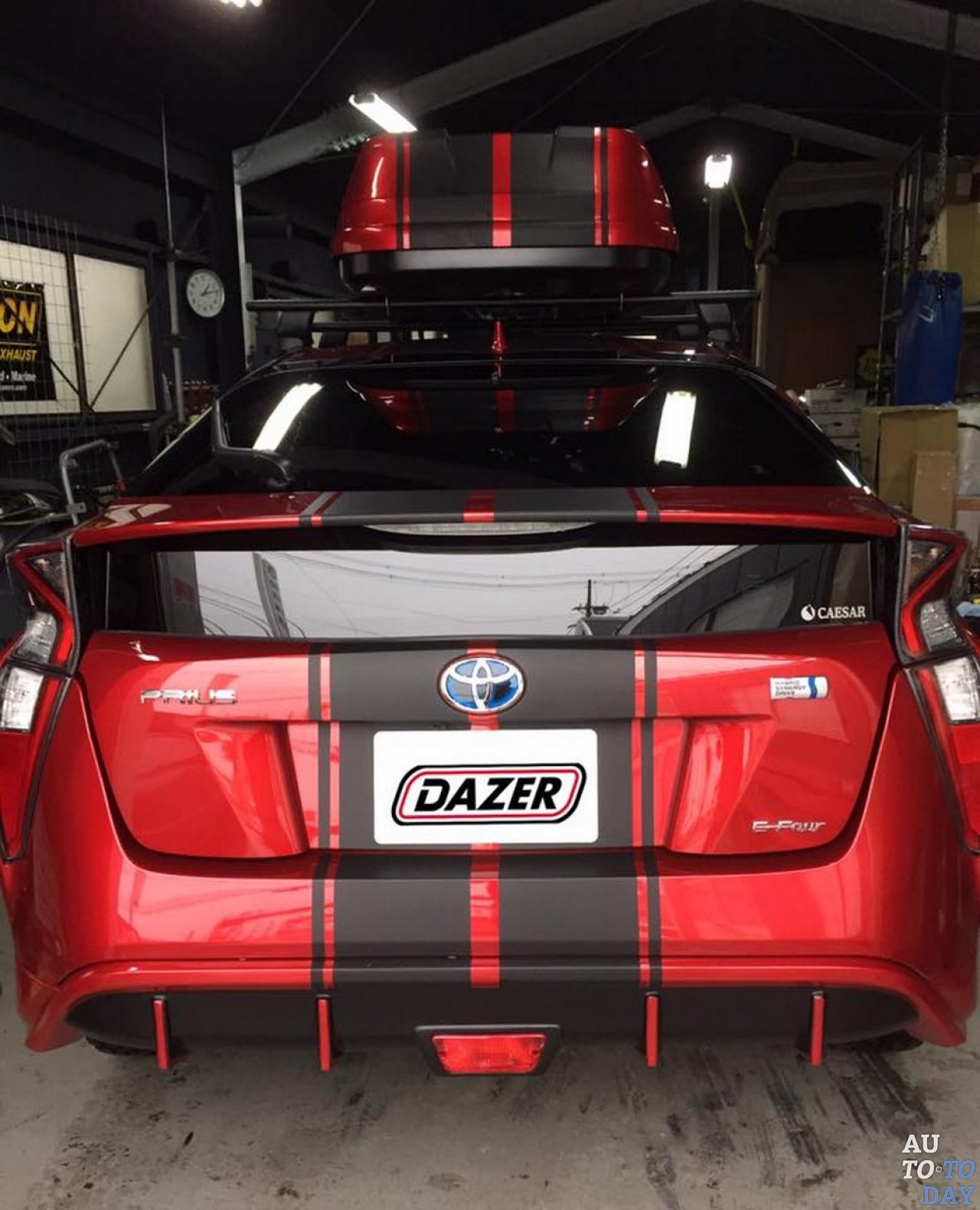 Этот автомобиль окрестили Prius-X и он дебютировал на выставке Sema в Лас-Вегасе и в настоящее время выставлен на Токийском автосалоне 2017 года. До сих пор не известно, сделало ли ателье Dazer какие-либо механические изменения под капотом, но на изображениях видны лишь установленные двойные выхлопные трубы GReddy. Все это своего рода выглядит более интересным и странным, чем заурядный Prius.