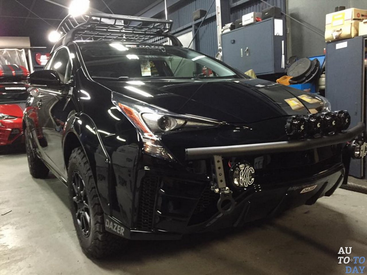 Инженеры и разработчики очень постарались, работая над последним Toyota Prius и придали ему внешний вид кроссовера. Результат их работы получился довольно уникальным. Этот Prius перобразовался с помощью тюнинг-ателье Dazer Car-Style, который добавил 50 миллиметров к клиренсу, пластиковые крылья, новые большие колеса с внедорожными шинами, новые передние и задние бамперы с надежной защитой и прочный багажник на крыше.