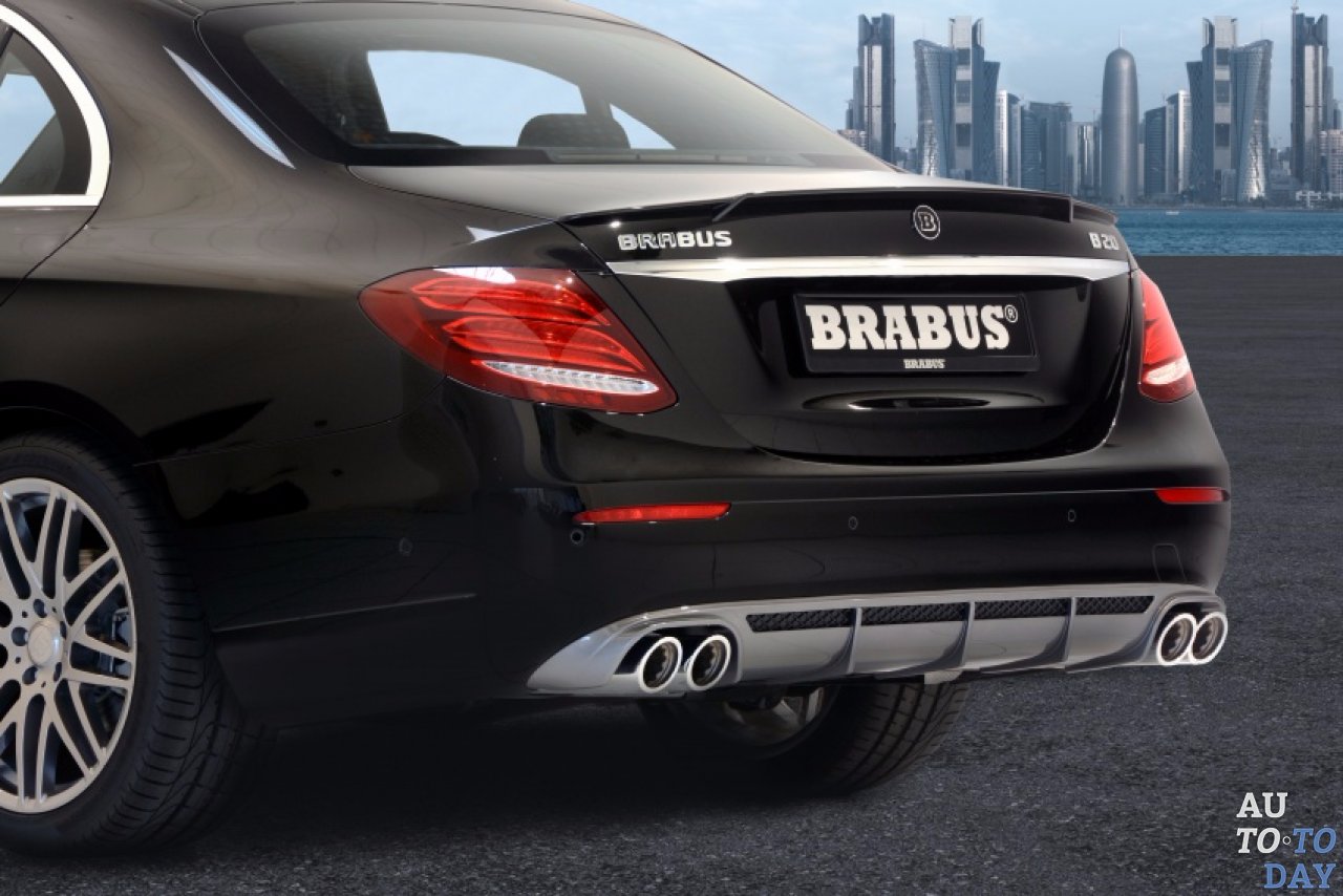Новый E-Class поставляется с двумя вариантами бампера, и обе получили модификации от Brabus. Эксклюзивные автомобили получили передний спойлер, который отличает их переднюю часть и, как утверждает тюнер, уменьшает подъемную силу на передней оси. Есть также специальное покрытие для боковых воздухозаборников и вставки в заднем бампере. Задний спойлер на крышке багажника подходит для всех моделей.