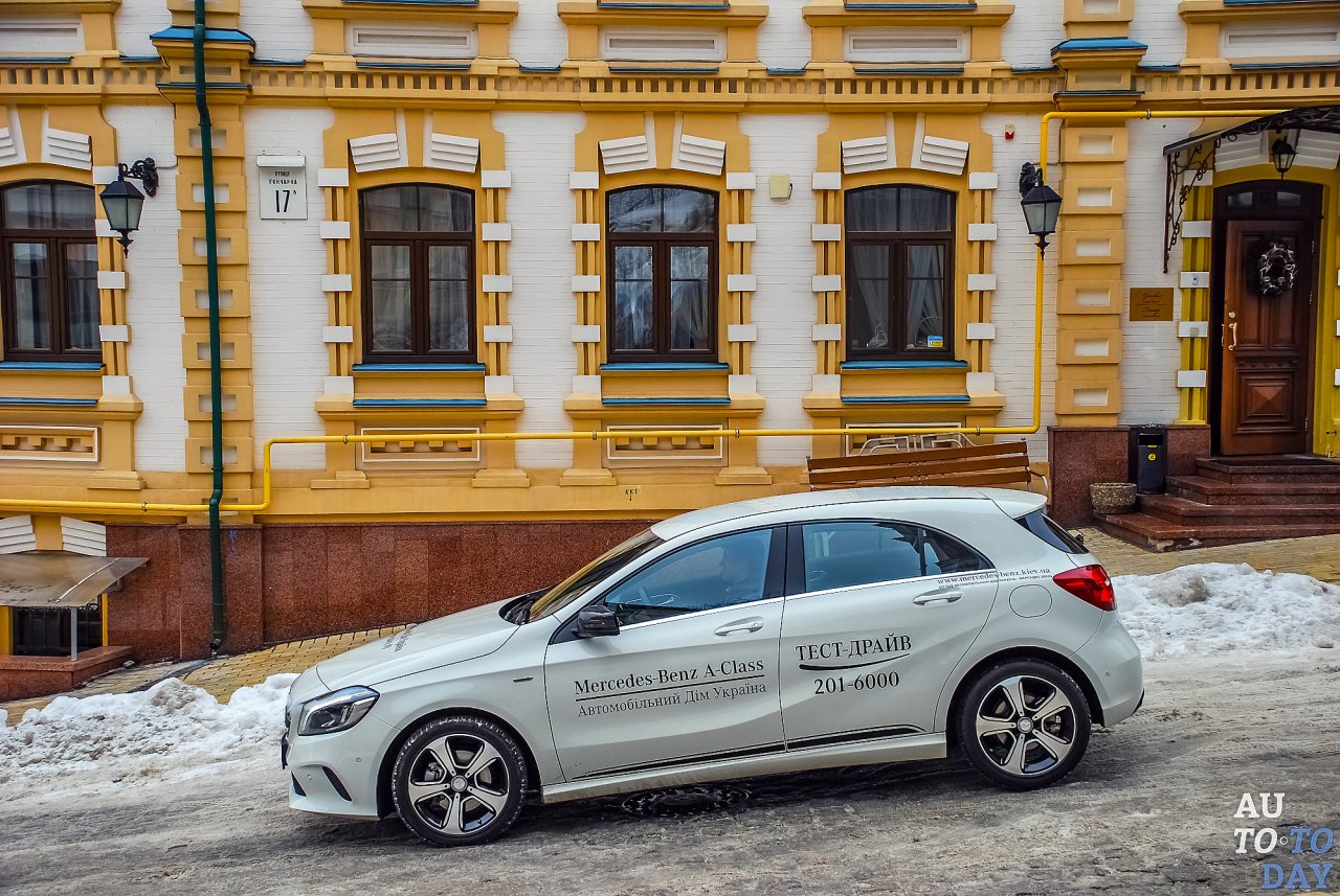 Но вернемся из прошлого в настоящее. Перед нами самый маленький современный Mercedes – A-Class в третьем поколении с внутризаводским индексом W176. Для теста мы выбрали машину с самым скромным на нашем рынке 1,6-литровым бензиновым силовым агрегатом мощностью 122 л. с., и с некоторыми опциями, доступными только для пострестайлинговой версии модели.
