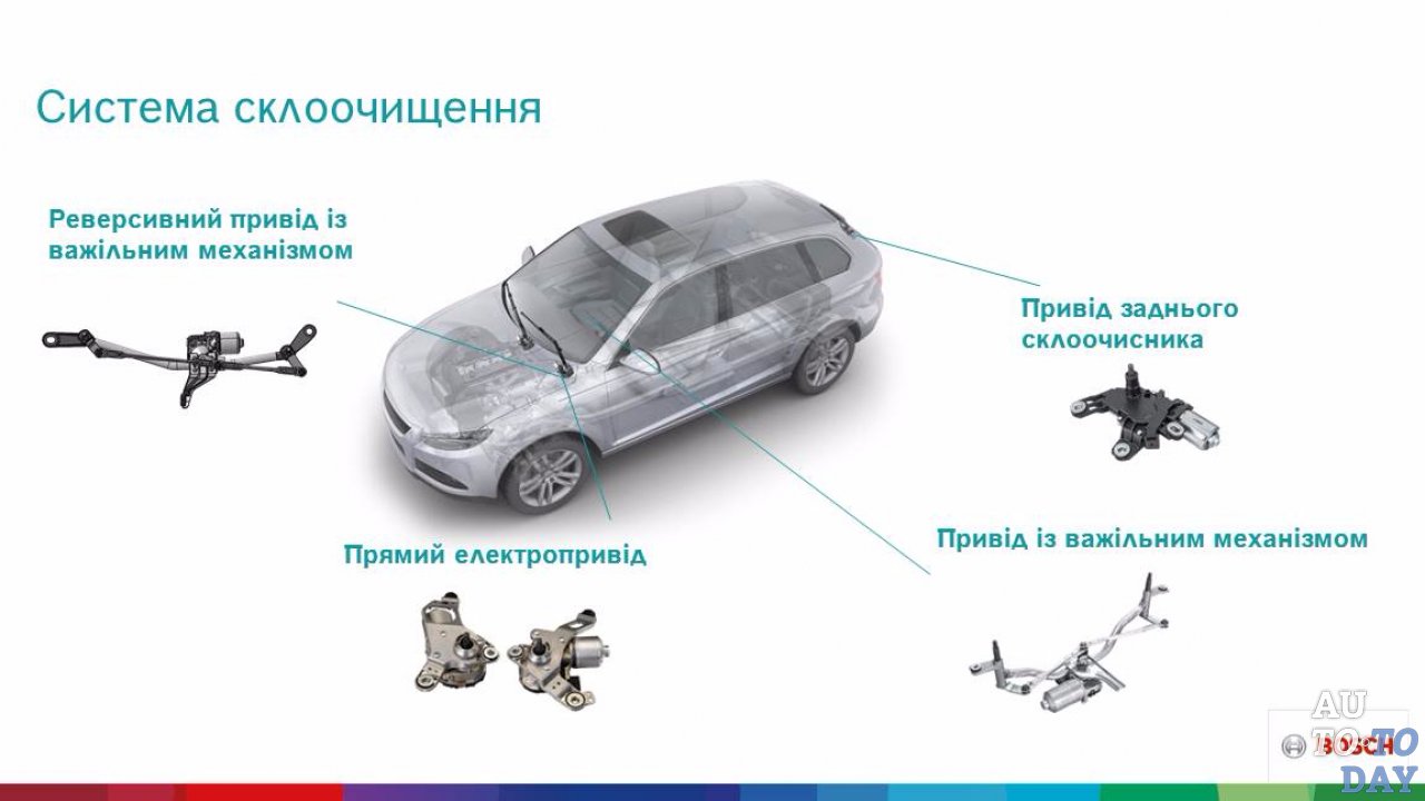 Высокопроизводительные системы стеклоочистки Bosch обеспечивают четкость обзора при любых погодных условиях, что способствует повышению безопасности вождения. Электроприводы стеклоочистителей предназначены для различных размеров ветрового стекла. Bosch также является одним из лидирующих производителей щеток стеклоочистителей, что позволяет предлагать комплексные решения.