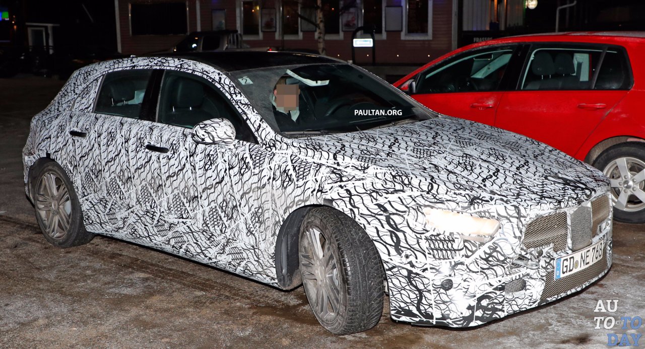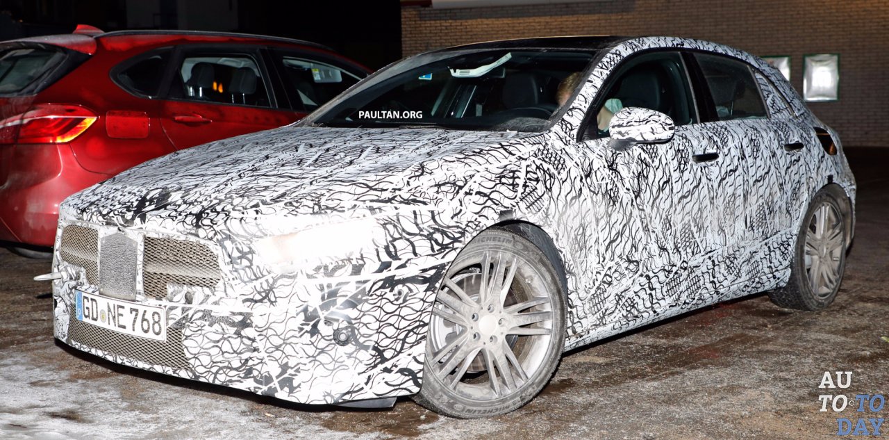 Сильно замаскированный Mercedes-Benz A-Class следующего поколения был впервые замечен во время ночных испытаний. A-Class теперь выглядит более низким и изящным, с более тонкой оптикой. Задняя оптика, наоборот, теперь стала шире.