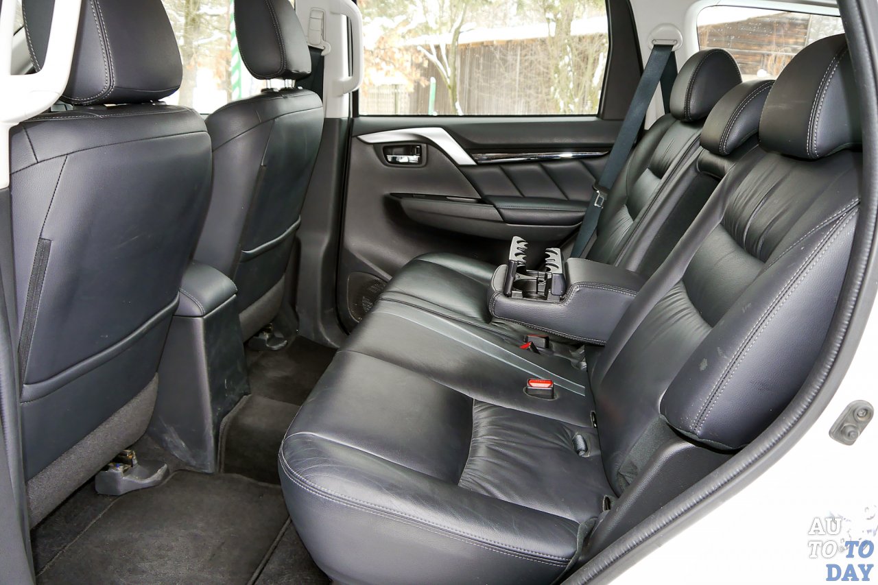 Наш Pajero Sport имеет неограниченный запас пространства. Это касается места и для передних, и для задних пассажиров, которые могут с легкостью забрасывать ногу на ногу, и огромного багажного отсека, объем которого изменяется в диапазоне 673–1624 л. Последняя столь значимая цифра достигается за счет того, что второй ряд кресел складывается полностью и ложится впритык к первому ярду, образуя ровную площадку.