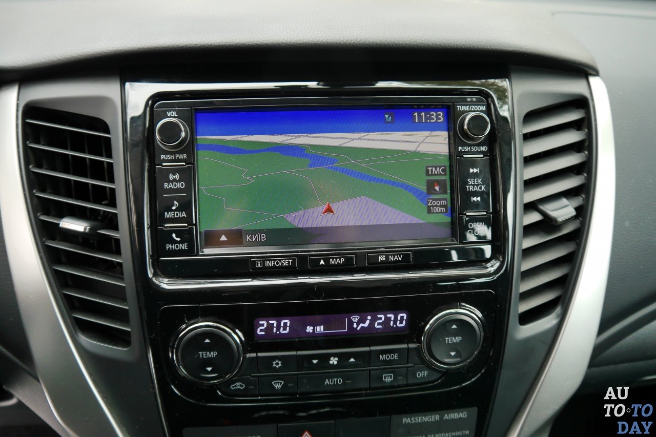 Торпедо по форме напоминает предшественника, но содержание качественно улучшилось. К сожалению, о его мягкости говорить пока рано, но перед нами удобные клавиши двухзонного климат-контроля, продуманное зонирование часто востребованных кнопок и не очень по доступности от места водителя, цветной дисплей мультимедийной системы с навигацией и возможностью проигрывания аудио- и видеофайлов. Кстати, навигатор нас порадовал возможностью вбить координаты широты и долготы конкретной точки (не у всех конкурентов есть такая опция). Рулевое колесо с множеством кнопочек и кожаной оплеткой на деле оказалось удобным. 3,8 оборота от упора до упора – большой показатель, который сильно хочется сократить при экстренном маневрировании в городе, но который просто необходим на заснеженном проселке. Кроме «круиза» и мудьтимедиа, с «баранки» можно вывести на основной монитор изображения с камер кругового обзора, что особенно полезно при прохождении узких и сложных участков.