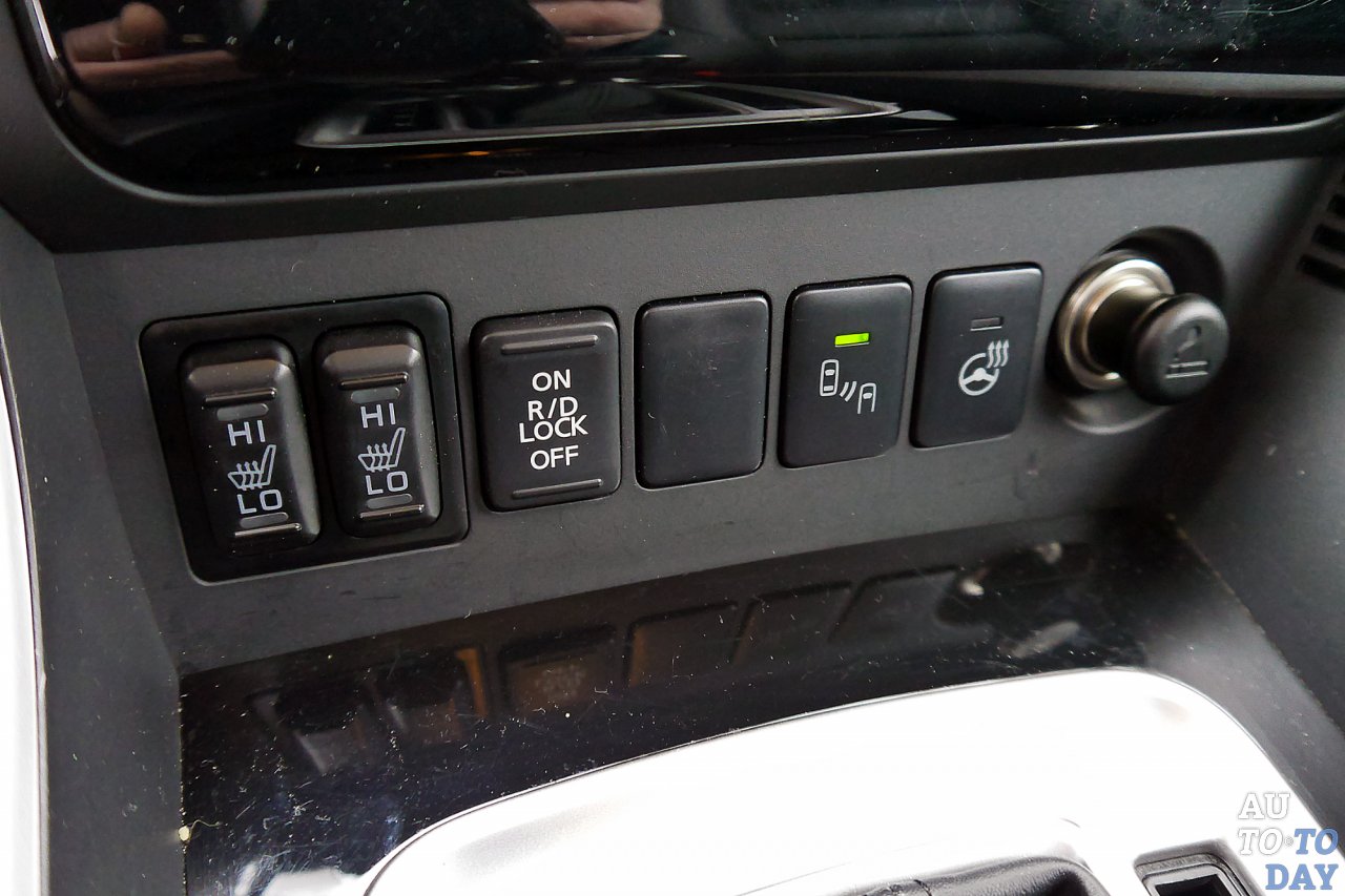 Среди стандартного внедорожного набора стоит выделить 18-дюймовые колесные диски на высокопрофильной резине (которая, как оказалось, вовсе не боится ям) и встроенные в пороги штатные подножки, без которых высадка/посадка превратилась бы в сущее испытание (и так в дождливую погоду штаны приходилось менять чуть ли не ежедневно). Аэродинамика у Mitsubishi не идеальная. После 100 км/ч начинают шуметь зеркала заднего вида, также на скорости загрязняется камера заднего вида.