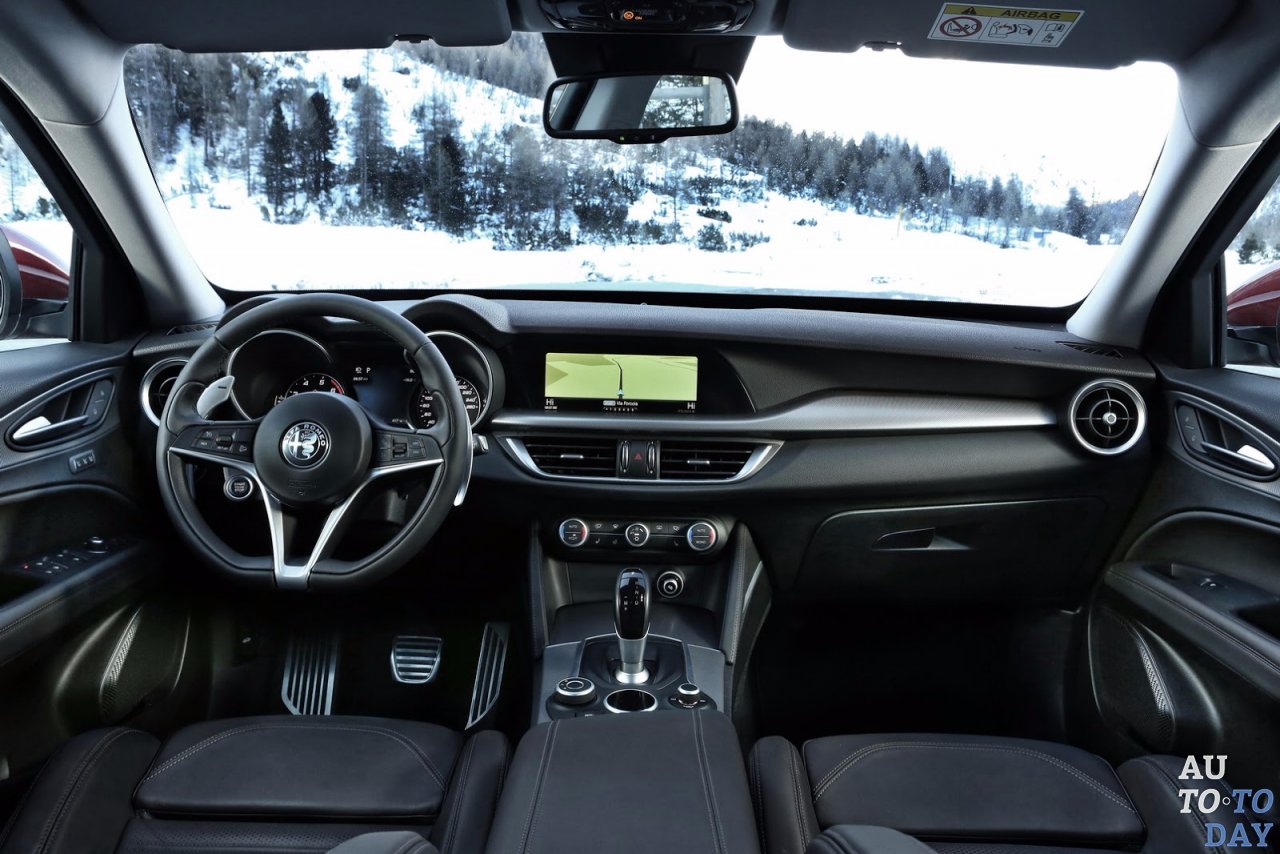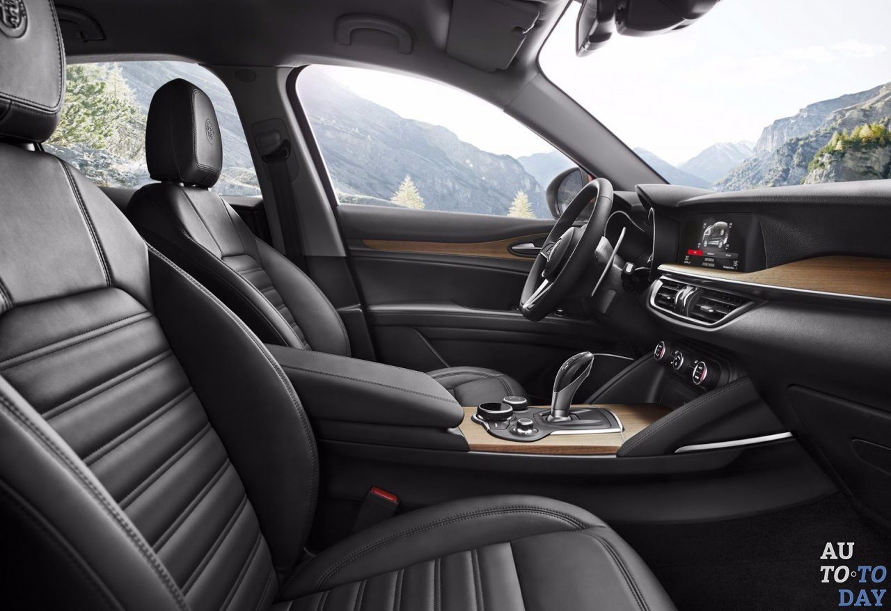 С точки зрения уровня отделки, базовая версия Stelvio оснащается 17-дюймовыми колесными дисками, 8,8-дюймовым дисплеем в салоне, 8 динамиками аудиосистемы, черными тканевыми сидениями. Эта версия также поставляется с датчиками парковки, круиз-контролем, электроприводом крышки багажника, датчиками света и дождя.