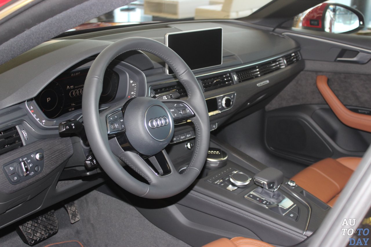 На сегодняшний день в Украину поставляются машины стремя двигателями – 2,0-литровые бензин и турбодизель мощностью 252 л. с. и 190 л. с. соответственно, а также 3,0-литровый бензиновый силовой агрегат на 354 л. с. Первые два работают с 7-диапазонной роботизированной коробкой передач, самый мощный же мотор – с АКП на 8 ступеней. 1 368 437 гривен – именно столько стоит самая скромная модификация А5 с дизельным двигателем, бензиновая версия стартует с 1 500 000 гривен.