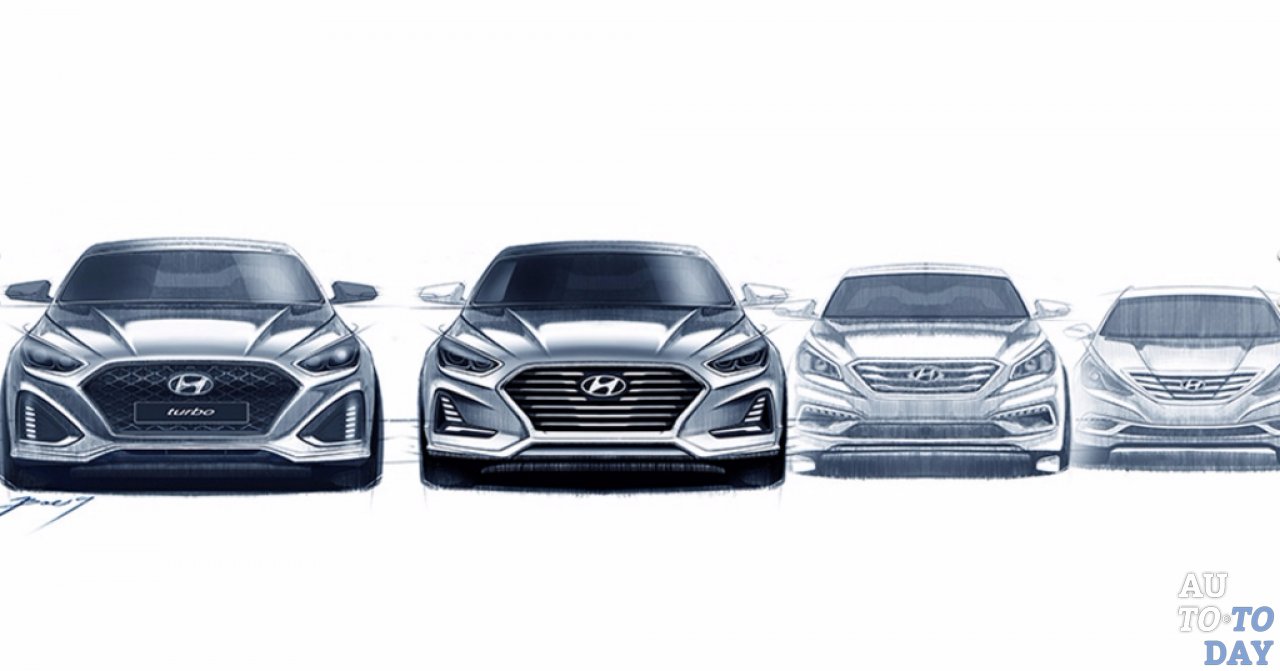 Hyundai только что запустил свой люксовый бренд Genesis, а насущные модели автопроизводителя сейчас находятся в процессе обновления. На автосалоне 2017 года в Чикаго был представлен впечатляющие редизайн Elantra GT, и в ближайшее время Hyundai представит спортивный вид обновленного Sonata. Ранее на этой неделе автопроизводитель выпустил эскизы и теперь первое фото машины всплыло путем утечки на сайте Hyundai Blog. Оно показывает стандартный Sonata и эскизы Sonata Turbo. В настоящее время Sonata Turbo продается в Соединенных Штатах как Sonata 2.0T Sport. Разработчики приняли красивый внешний вид меньшего Elantra и Accent для обновленного Sonata, в том числе проделали почти идентичные процедуры с фарами и решеткой радиатора.