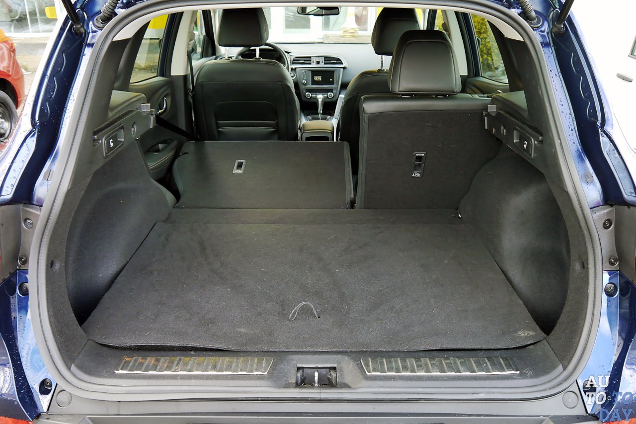 Багажный отсек по умолчанию умещает 409 литров (цифра для модификации с полноразмерной 16-дюймовой «запаской»), со сложенными спинками второго ряда мы получаем ровную площадку, а полезный объем возрастает до 1478 литров. Удобно, что произвести эту трансформацию можно как из салона, так и из багажника, потянув за рычажок на боковине. При необходимости перевезти что-то длинное и узкое можно дополнительно сложить вперед спинку переднего пассажира.