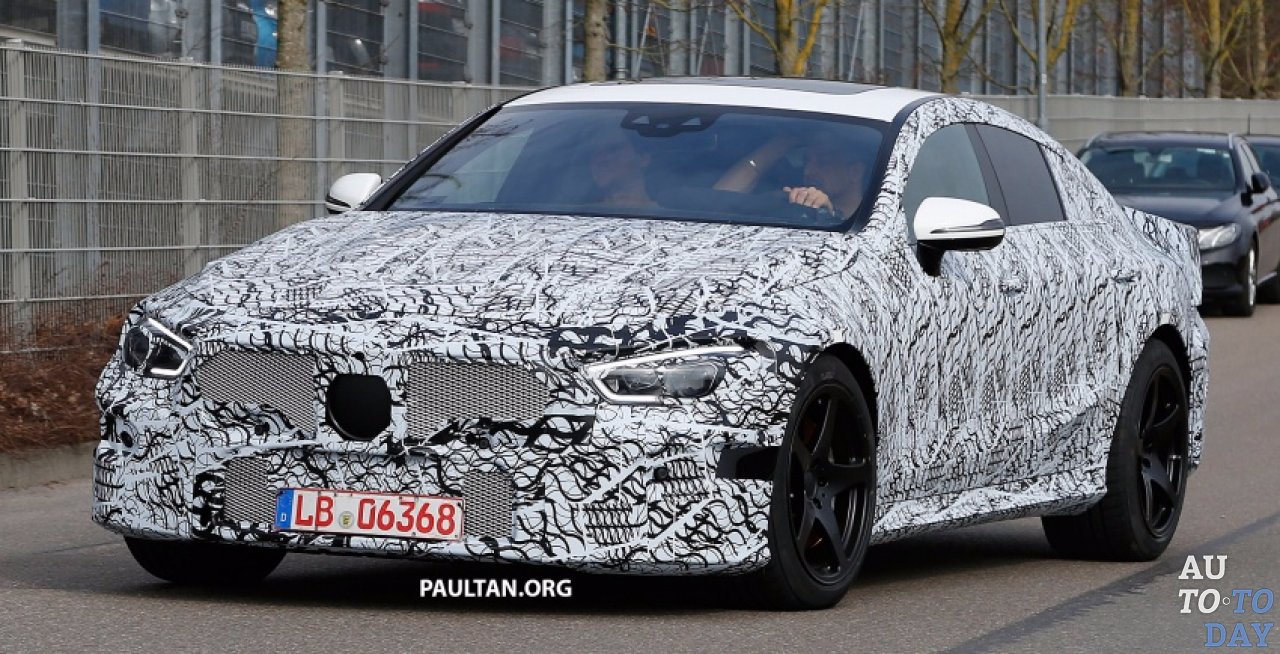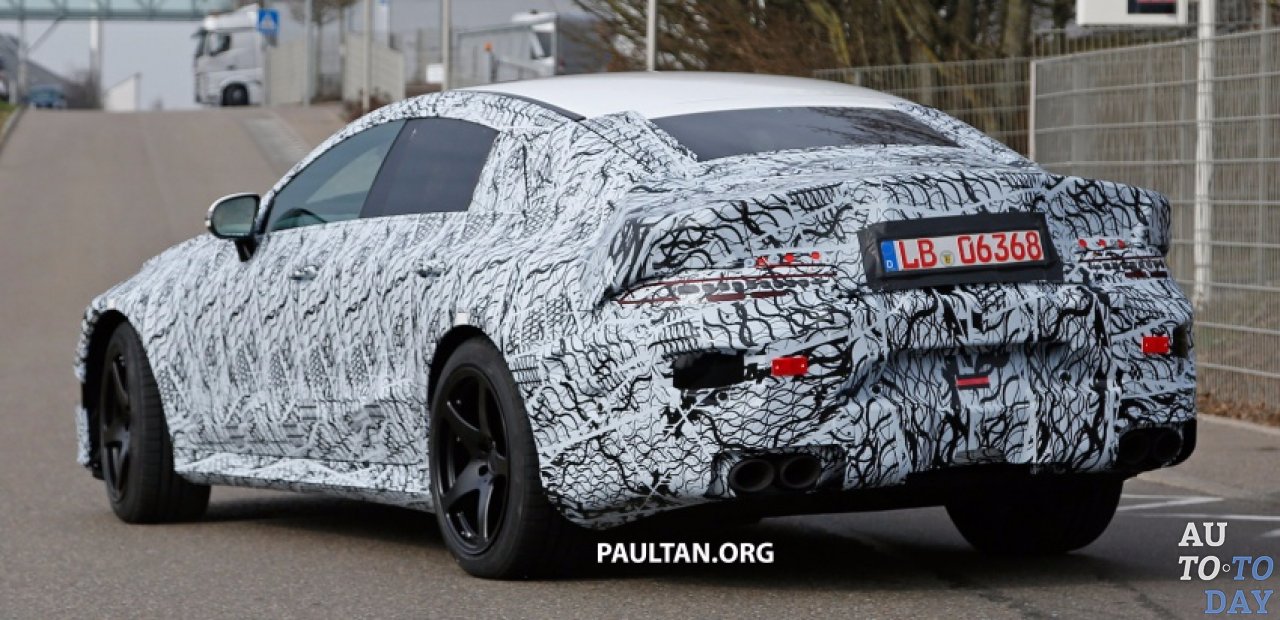 Четырехдверный концепт Mercedes-AMG GT дебютировал на Женевском автосалоне. Многие детали четырехдверного GT остаются скрытыми под камуфляжем, но спереди видны передние фары, которые, кажется, следуют контурам концепта GT. Его светодиодные дневные ходовые огни образуют более упрощенный профиль «C» по сравнению с более декоративным узором на Женевском концепте, и, хотя они также скрыты, ожидается, что спереди будут представлены решетки радиатора AMG GT.