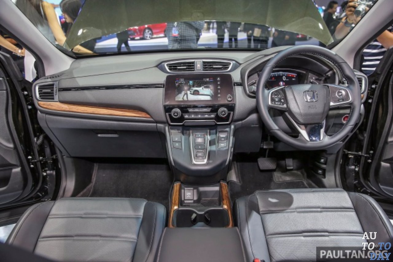 Основная внутренняя архитектура тайского CR-V похожа на американский автомобиль - «плавающая» центральная панель, виртуальный дисплей приборов TFT LCD и трехспицевый руль в стиле Civic. Рычаг переключения был заменен на кнопочный селектор в стиле NSX, а кнопка заднего хода глубоко погружена во избежание случайного нажатия. «Электронный селектор передач» предназначен только для дизельного двигателя, а бензиновая версия получила обычный рычаг переключения передач.