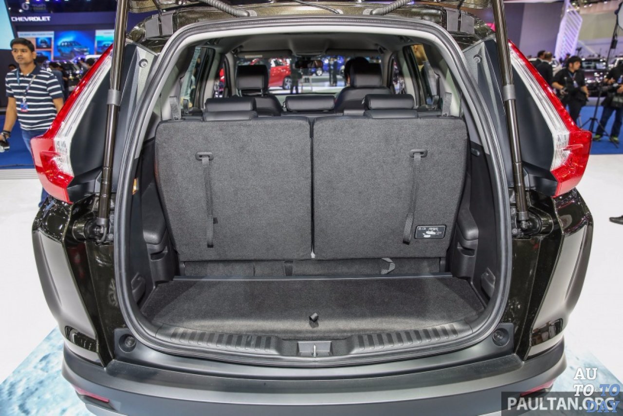 Сиденья второго и третьего ряда можно откидывать, причем первые также могут скользить вперед или назад, как и раньше. Второй ряд также сворачивается, чтобы обеспечить доступ к третьему ряду. Как и в американских моделях (Таиланд - третья страна в мире, которая запускает CR-V после США и Канады), есть вентиляционные отверстия для второго ряда, но в третьем ряду есть уникальные отверстия на крыше, что придает авто стиль туристического автобуса. Третий ряд разделяется на напополам, а пол багажника может быть установлен в двух положениях - более высокое обеспечивает плоскую зону загрузки с сложенным третьим рядом. Полноразмерная запасная шина находится внутри автомобиля под третьим рядом.