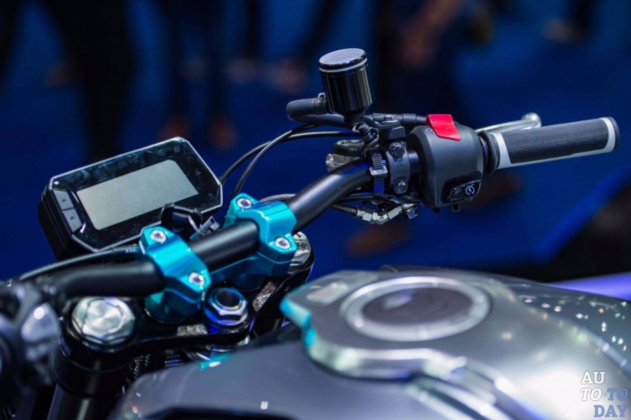 Огромный глушитель украшает нижнюю часть байка, а урезанная задняя часть напоминает о Kenstomoto MechaStallion. Верхняя часть камеры заднего вида размещена на капоте заднего сиденья, а передняя камера, установленная на обтекателе приборной панели и, возможно, отображает изображение на дисплее.