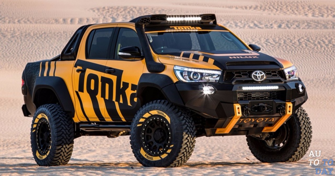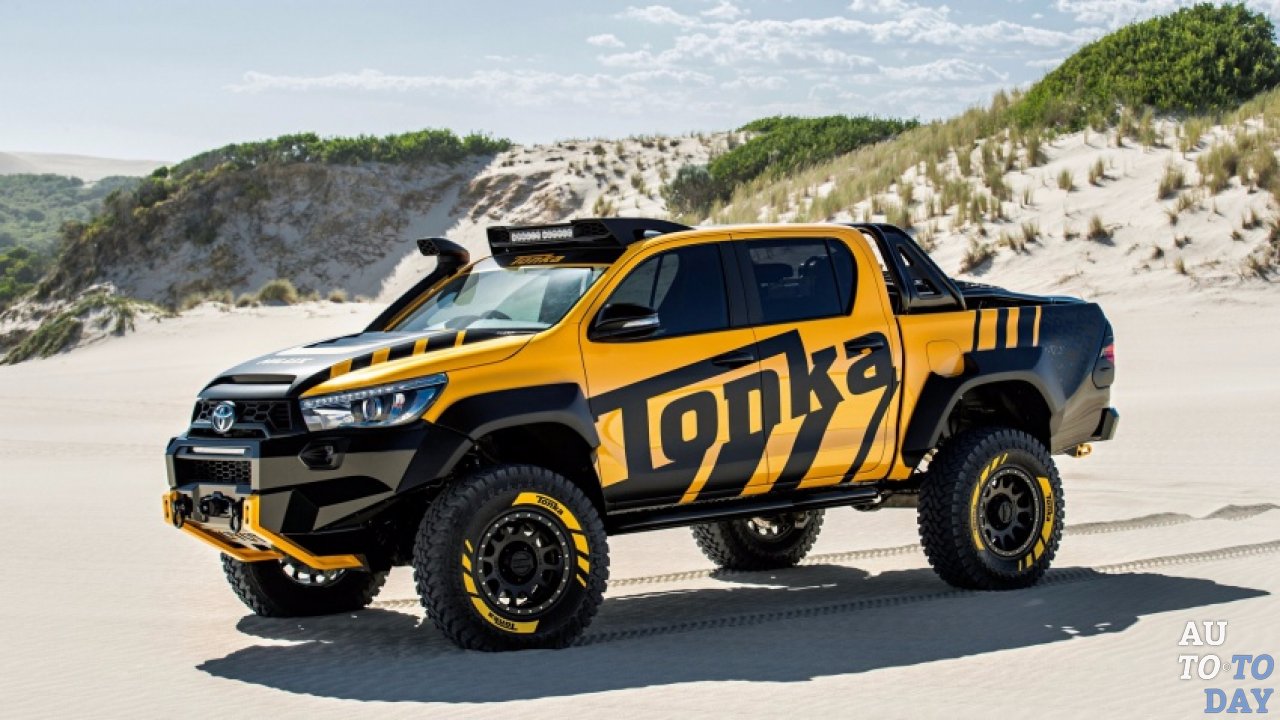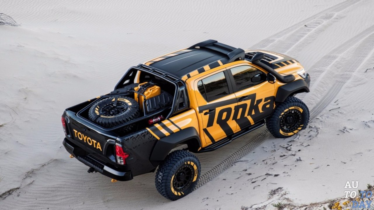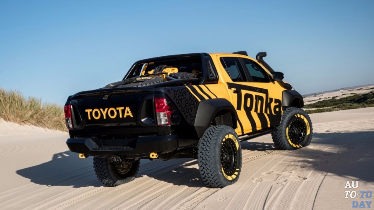 Разработанный и построенный командой подразделения по планированию и разработке продукции Toyota Australia, ярко окрашенный внедорожник также отмечает мировые юбилеи как Toyota (80-летие), так и Tonka (70-летие) в этом году. Основанный на Hilux SR5, проданном в Австралии, концепт оснащена 2,8-литровым турбодизельным двигателем мощностью 174 л.с. и 420 Нм крутящего момента. Он также получил множество модификаций для создания вида «ездить в любом месте», начиная с увеличения высоты на 150 мм, которая сочетается с высоконагруженной осью, сверхпрочной подвеской и шинами диаметром 35 дюймов.