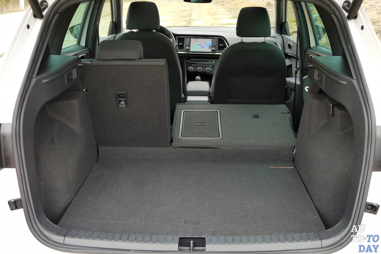 Объем багажного отсека в полноприводной «Атеке» равен 485 литров. Если сложить спинки второго ряда, то получим уже 1604 литра, но вдобавок – и пол со ступенькой. Под полом можно найти крошечную «докатку», в которой в свою очередь прячется сабвуфер. В качестве опции доступен также и багажник с подпольем для мелочевки.