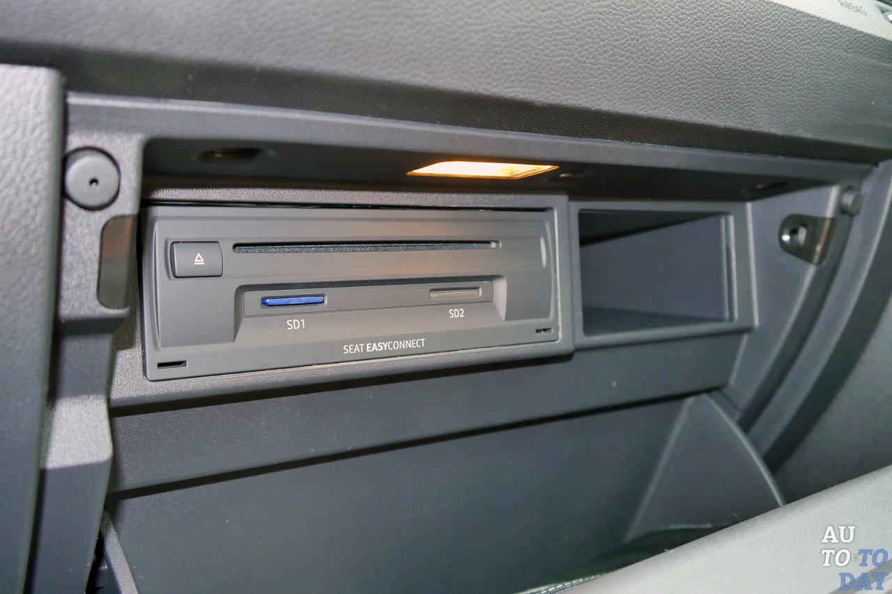 В бардачке спрятан чейнджер и слоты карт памяти.