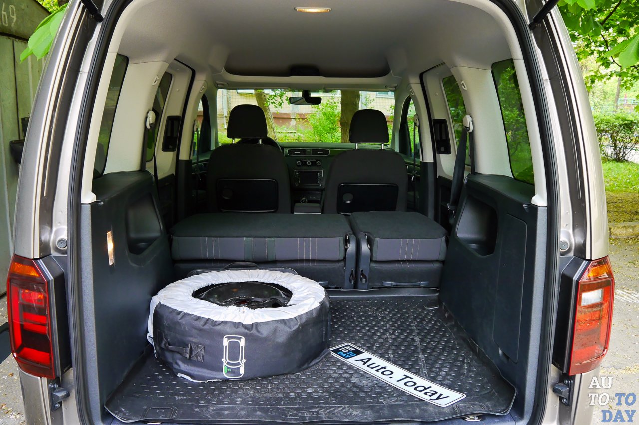 Объем багажного отсека по умолчанию равен 750 литрам. Если сложить спинки второго ряда (а можно удалить его вовсе!), то эта цифра увеличится до солидных 3030 литров. Единственное отличие нашего багажника от «монопривода» - это полноразмерное запасное колесо в стильном чехле, лежащее прямо в багажнике. Дело в том, что привычное место под полом отчасти занимает корпус картера заднего ведущего моста, поэтому «запаска» перекочевала во внутрь. Во время теста мы проверили «каддик» в деле, поучаствовав в переселении одной молодой семьи с квартиры на квартиру. Испытание переездом показало, что размещенная внутри запаска почти незаметна при максимально увеличенном грузовом отсеке, но в 5-местном варианте, конечно же, отнятый колесом полезный объем кажется более весомым. Скрыть от посторонних вашу поклажу можно мягкой шторкой.