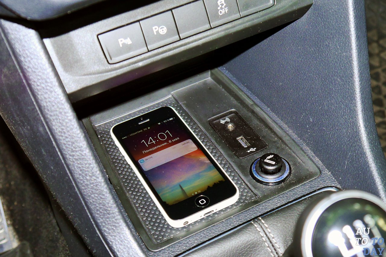 Удобное место для смартфона и напоминание о его наличии в машине при активированном Bluetooth - очень удобные штуки, которые есть далеко не у всех конкурентов.
