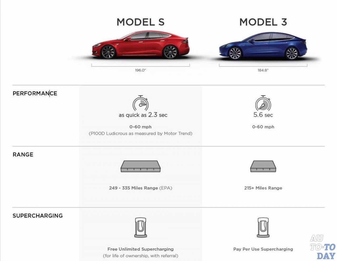 Сообщается, что список спецификаций новой модели Tesla Model 3 просочился в виде сравнительной таблицы между новой компактной Tesla и Model S. Внутренний источник передал эту информацию вместе с самой инфографикой, как часть кампании автопроизводителя против роста продаж Model 3.