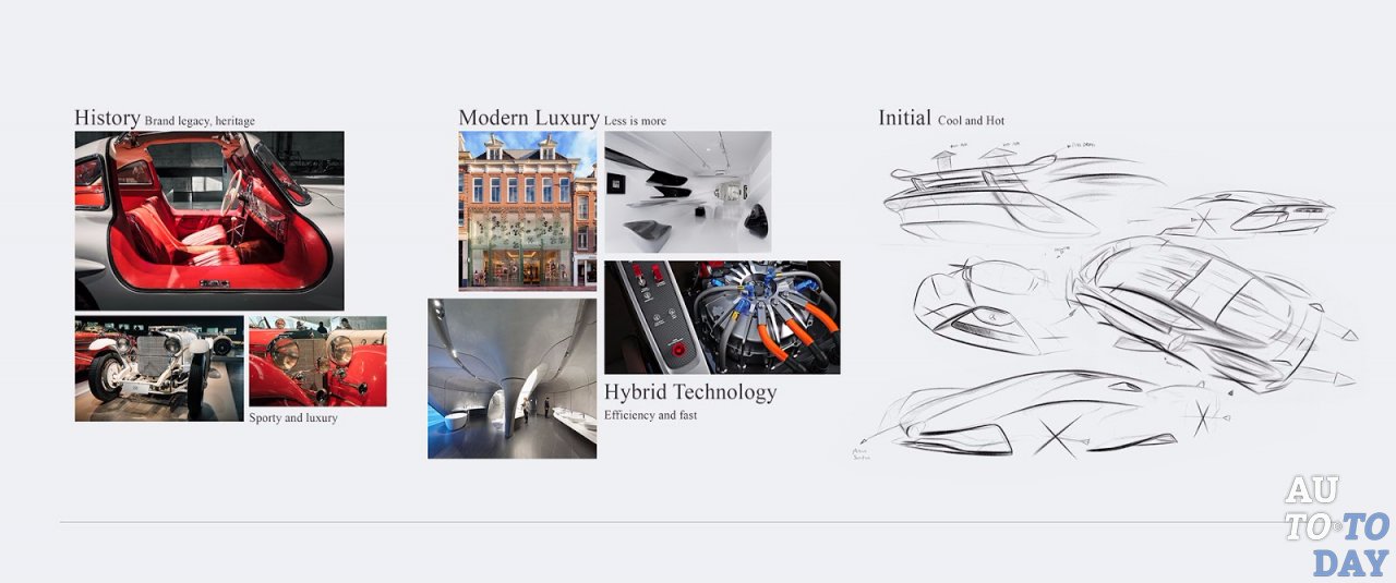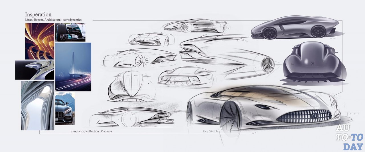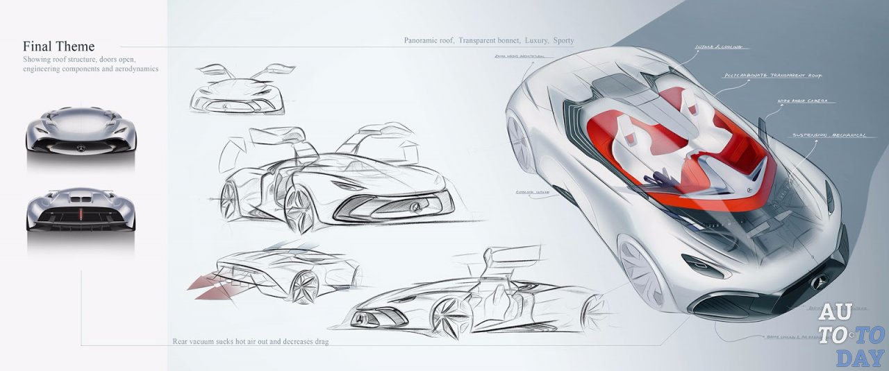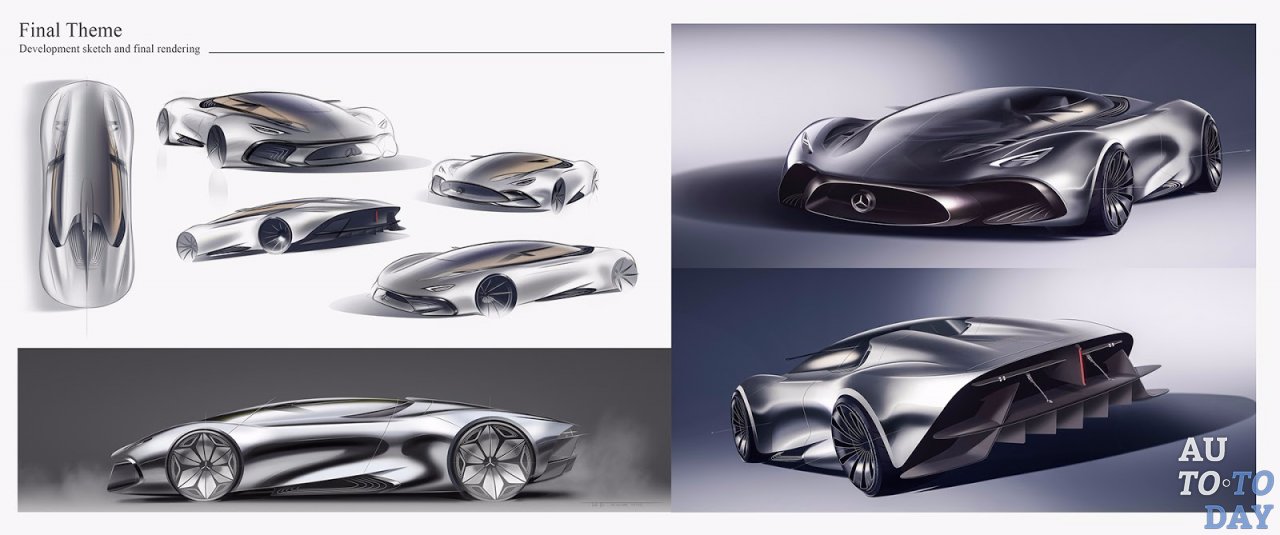 Человек, стоящий за созданием такого дизайна, Yicheng Fan, был вдохновлен образцовыми моделями Mercedes прошлого, а также философией дизайна - «чем меньше, тем лучше». При этом он создал транспортное средство, которое не выглядело бы неуместным, сидящим рядом с Aston Martin Valkyrie.
