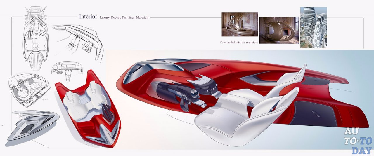 С тыла мы можем видеть набор прочных контрфорсов, агрессивный задний диффузор и то, что кажется одиночным вертикальным задним фонарем, движущимся к центру. Интерьер также довольно особенный, салон предлагает двухместное размещение, лучшие функции, футуристический руль и многое другое.