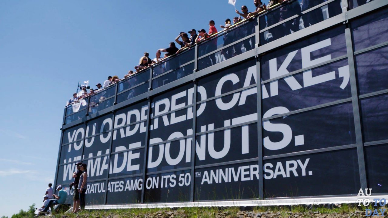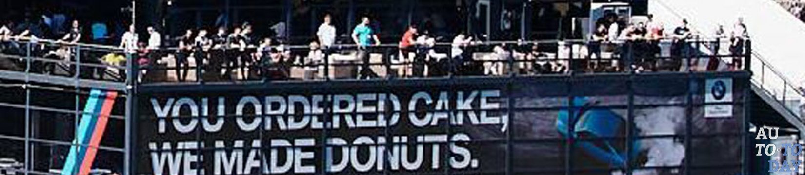Последний отметил свой 50-летний юбилей в минувшие выходные на Нюрбургринге, где состоялась 24-часовая гонка наряду с Чемпионатом мира по автогонкам. Будучи хорошим соседом, BMW M воспользовался случаем, чтобы пожелать своему сопернику из Аффальтербаха счастливого дня рождения. На трассе Нюрбургринг был размещен огромный щит, изображающий удивительную комичную картину. В правой его части изображен BMW M4, который дрифтует на асфальте, рисуя задними покрышками «пончики», а в левой расположена надпись: «Заказывали торт? Мы испекли для вас пончики».
