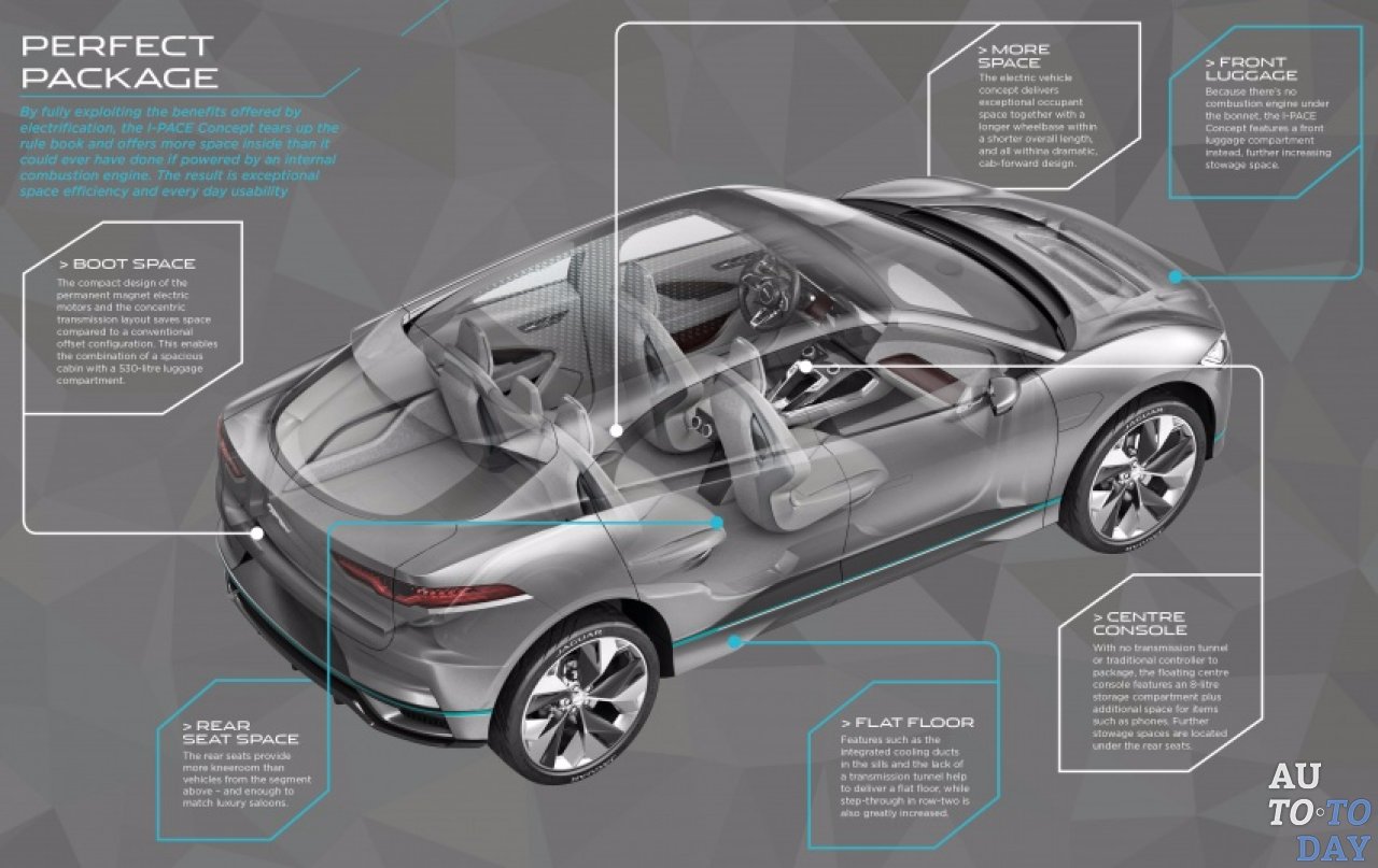 Автомобиль предложит диапазон запаса хода 500 км при одном полном заряде, мощность мотора составит 400 л. с. и 700 Нм крутящего момента, а спринт с места до 100 км/ч займет всего четыре секунды. Колесная база новинки составляет 2 989 мм (на 115 мм больше, чем у F-Pace, предлагая больше внутреннего пространства, а багажное отделение сможет вместить до 530 литров).