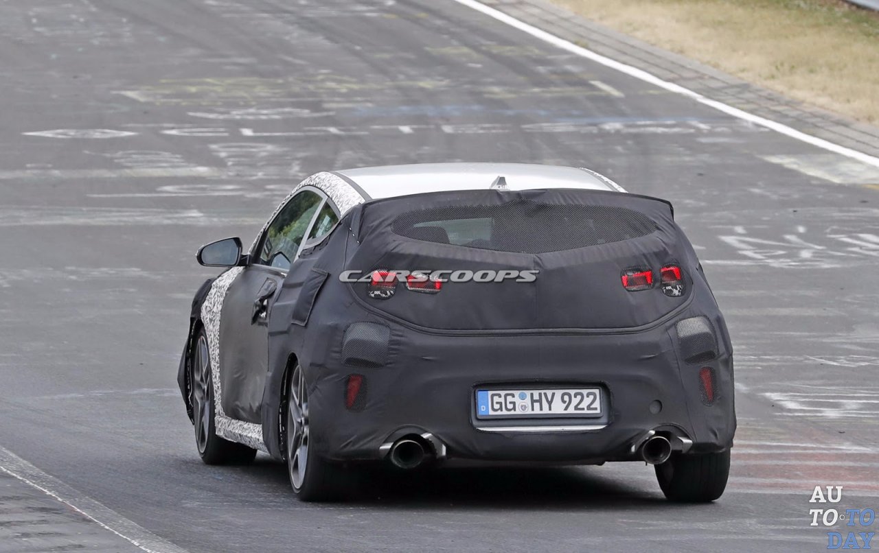 Как и прежде, это огромные двойные выхлопные трубы, которые делают этот автомобиль намного больше, чем просто обычный старый Veloster. Это та же самая установка, которую мы видели на этом плохо замаскированном i30 N в феврале.